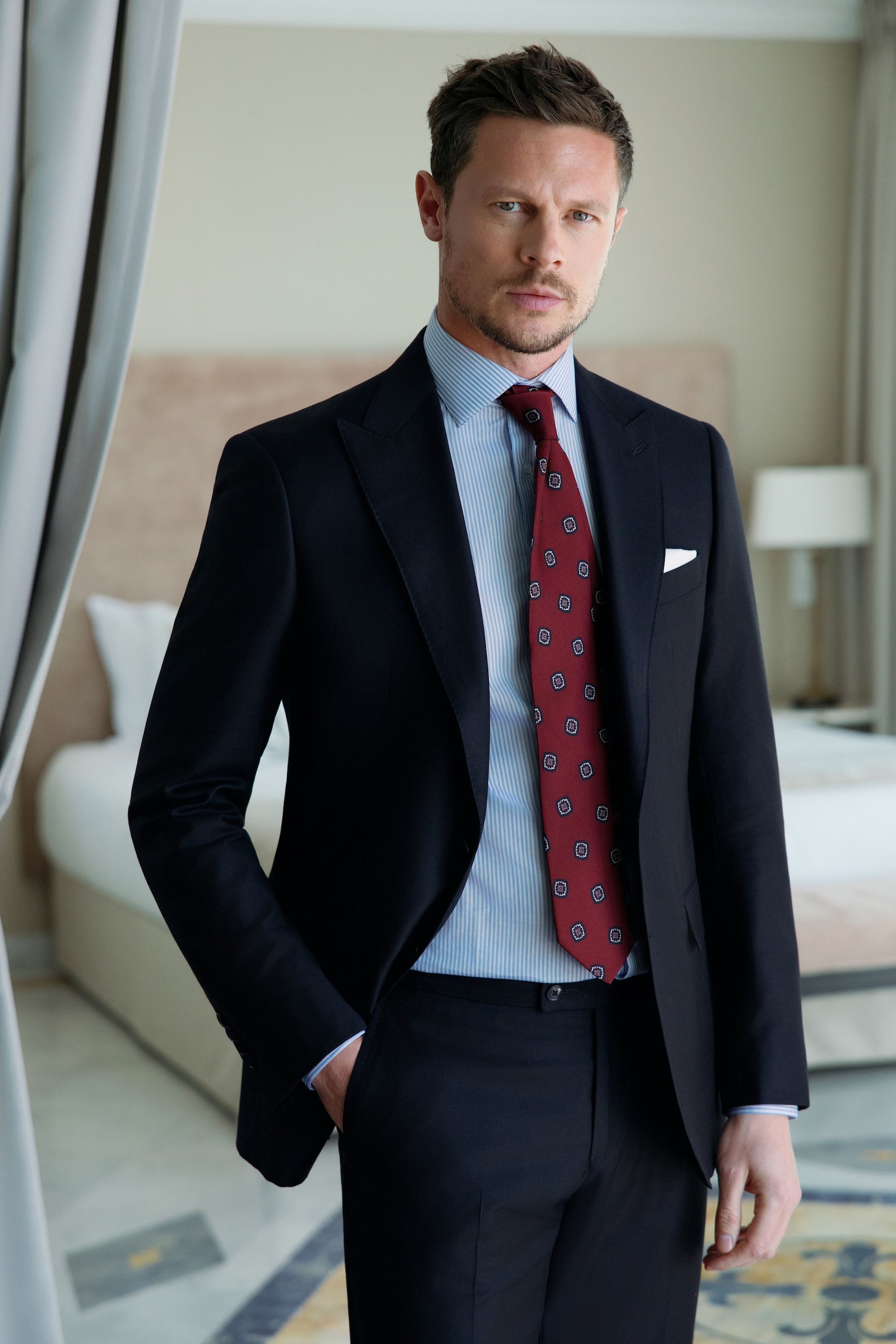 Slim fit urmărește mai îndeaproape linia corpului și are o expresie mai contemporană. Regular fit oferă mai multă lejeritate și un echilibru clasic. Alegerea depinde de constituție, preferință și contextul în care va fi purtat costumul.
