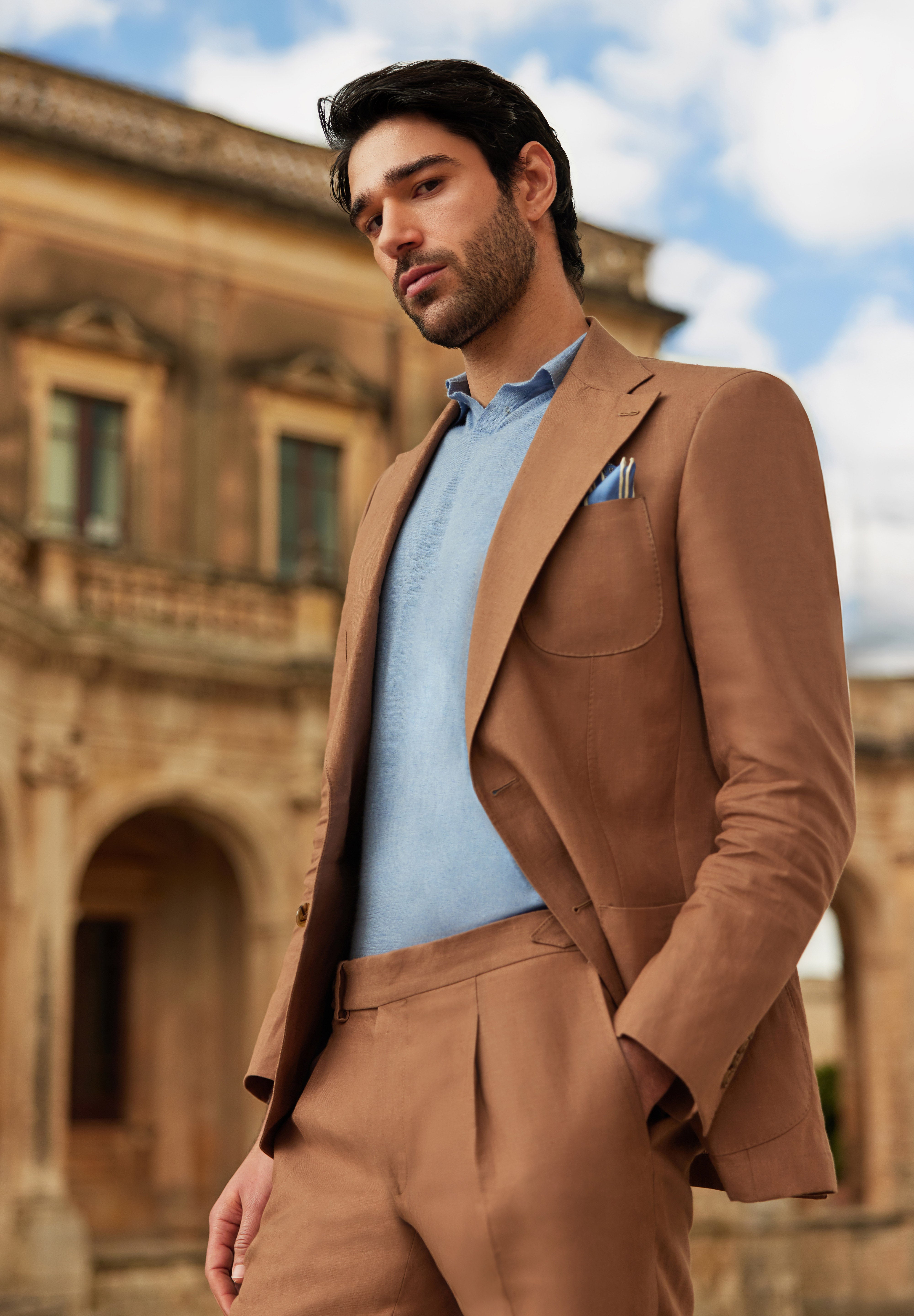 Avola is the suit that evokes the freedom and brightness of days under the Mediterranean sun.