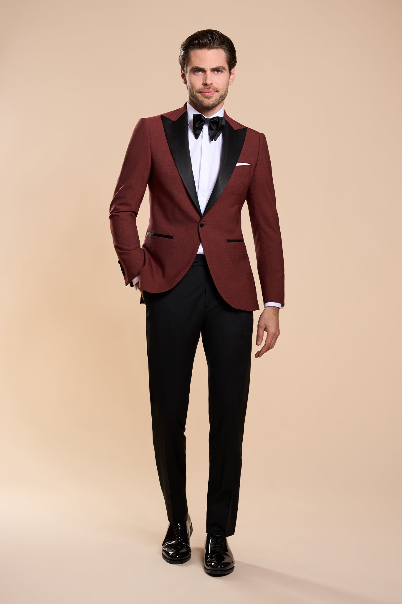 With an impeccable cut, premium Botto Giuseppe fabric, and a color that exudes passion and boldness, this formal suit will highlight your impeccable masculine style and help you shine in special moments in your life.