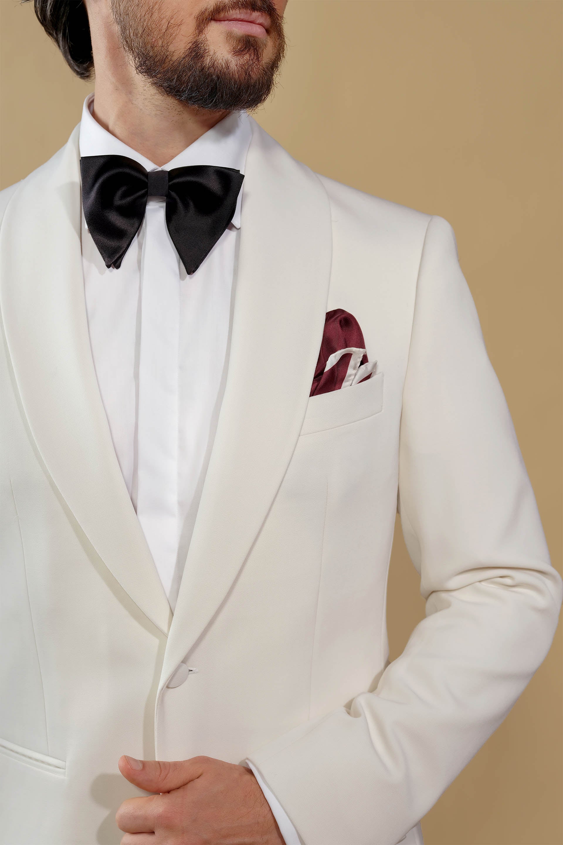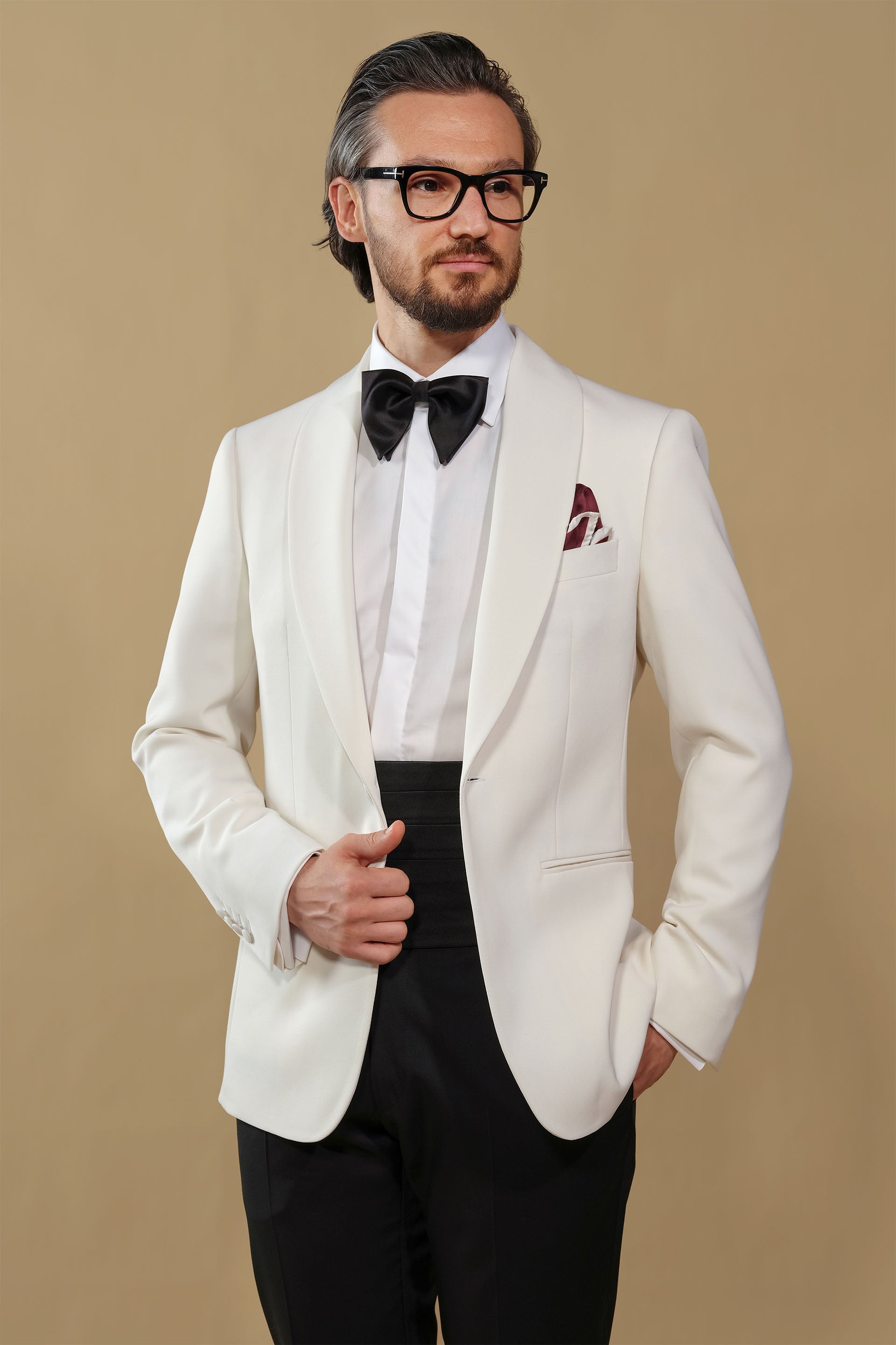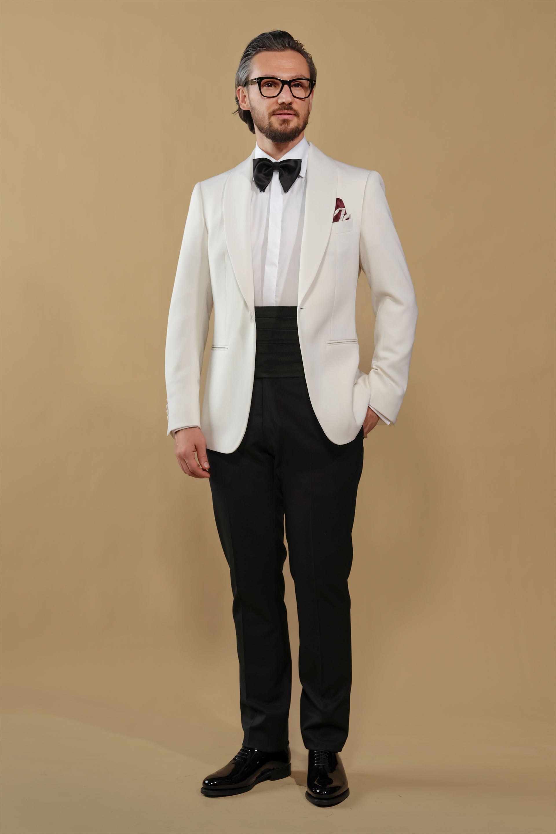Smokingul alb este o alegere îndrăzneață și elegantă, perfectă pentru momentele în care vrei să ieși în evidență, dar într-un mod elegant și relaxat.