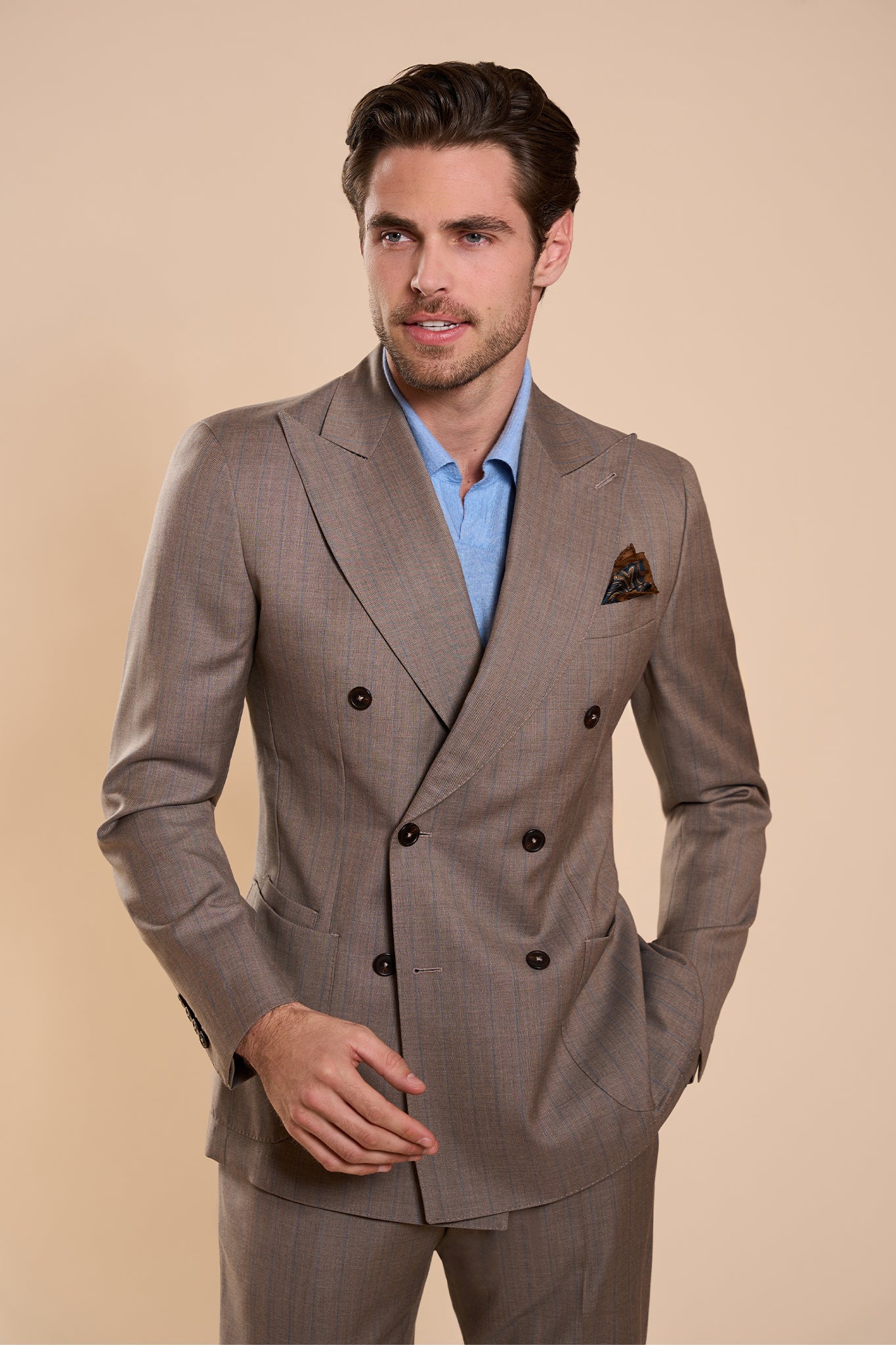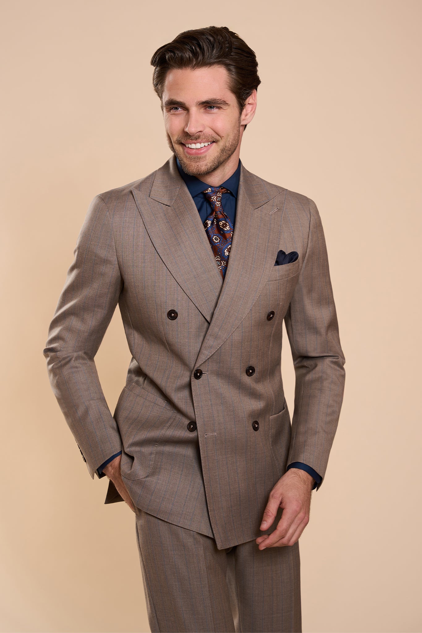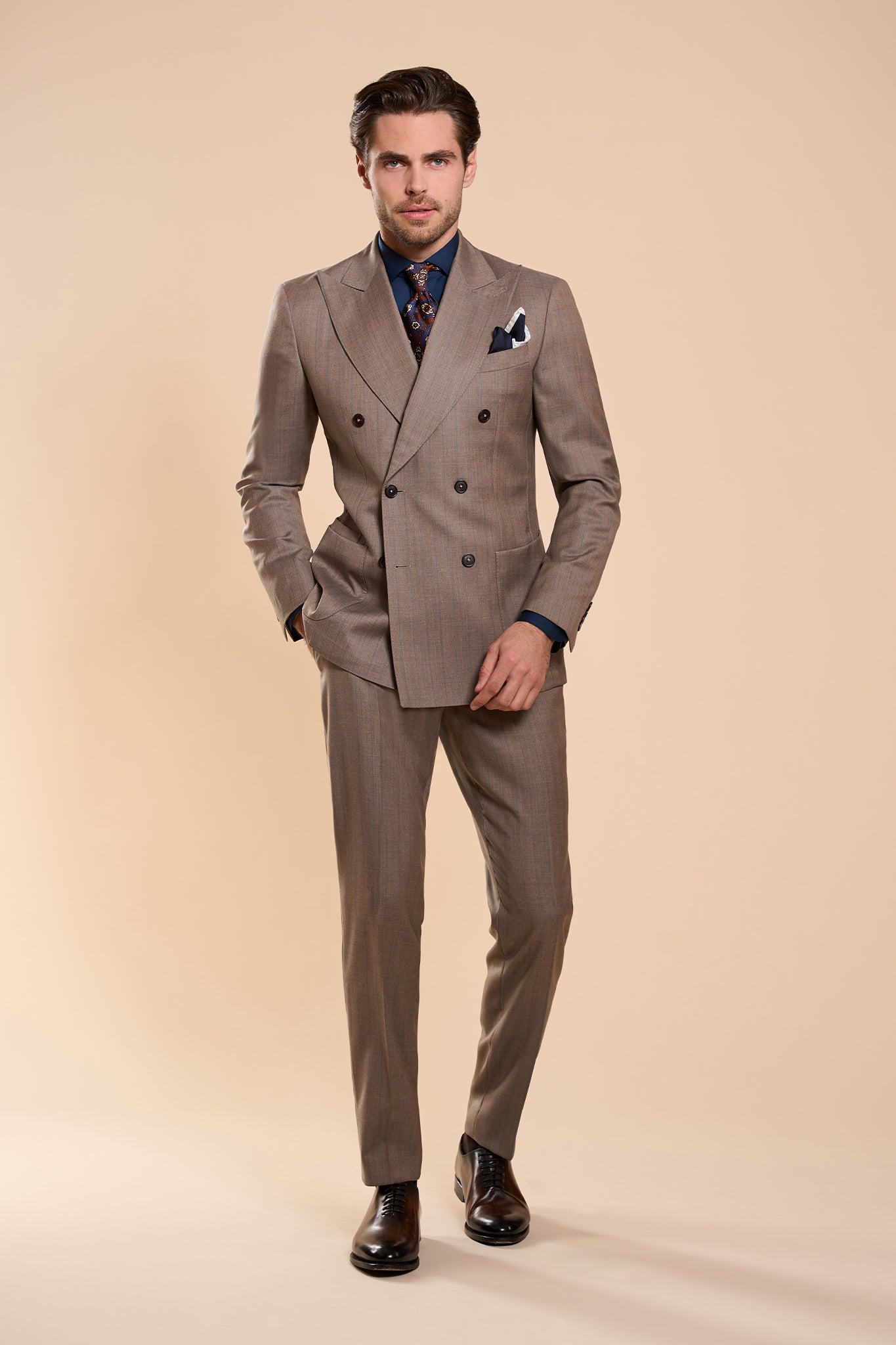 Cu un design la două rânduri de nasturi și o nuanță inspirată de culorile nisipului și al talazurilor, costumul Hierapolis reînvie clasicul cu o notă modernă.