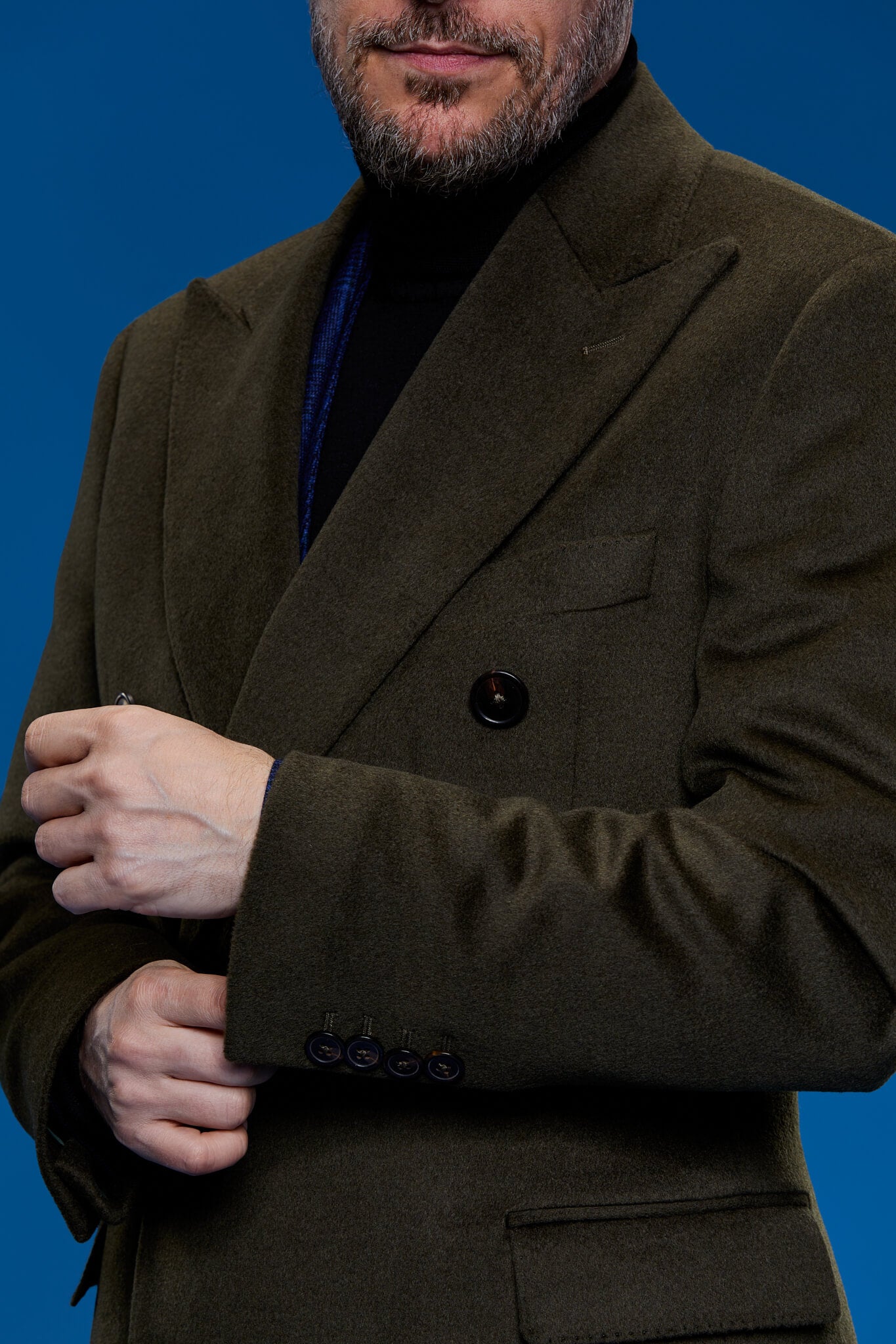 Coat made of soft, full fabric, with two rows of buttons, in a discreet earthy shade.