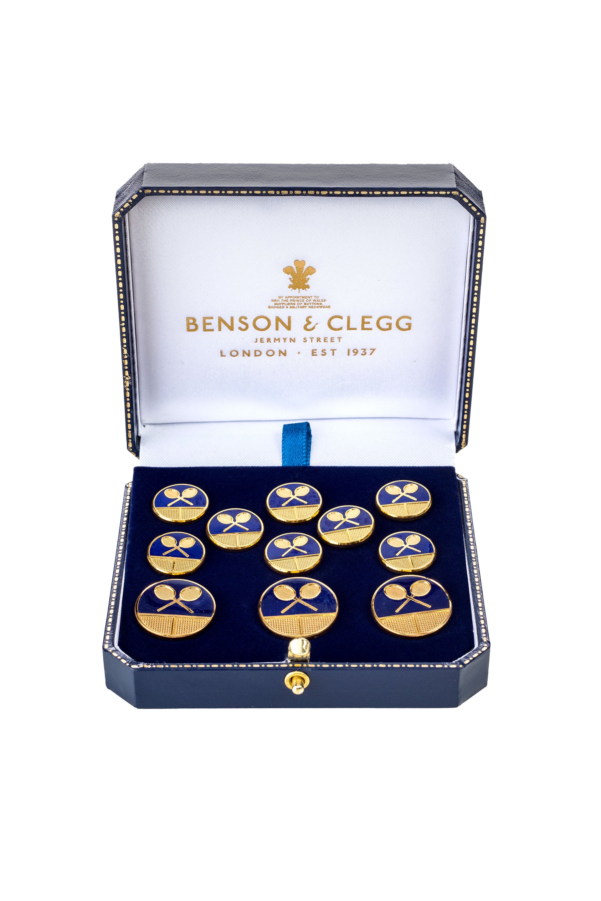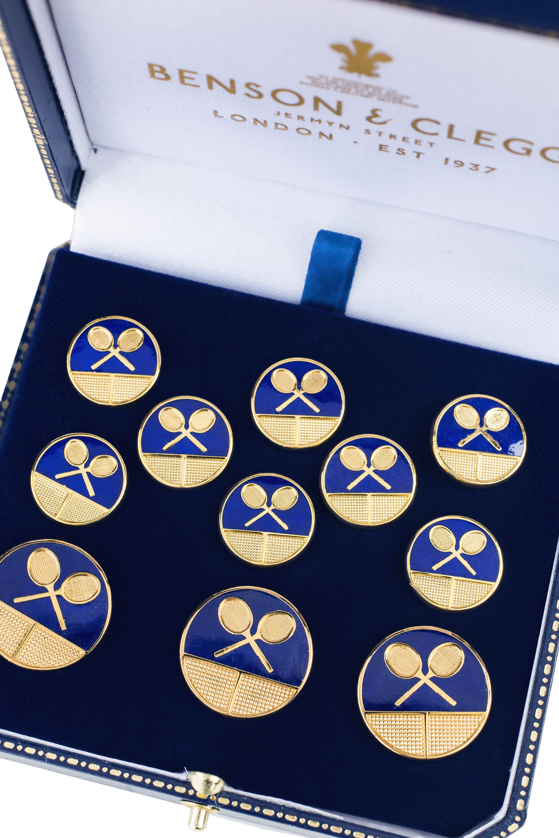 These buttons are made in England by Benson & Clegg and are gold plated.
