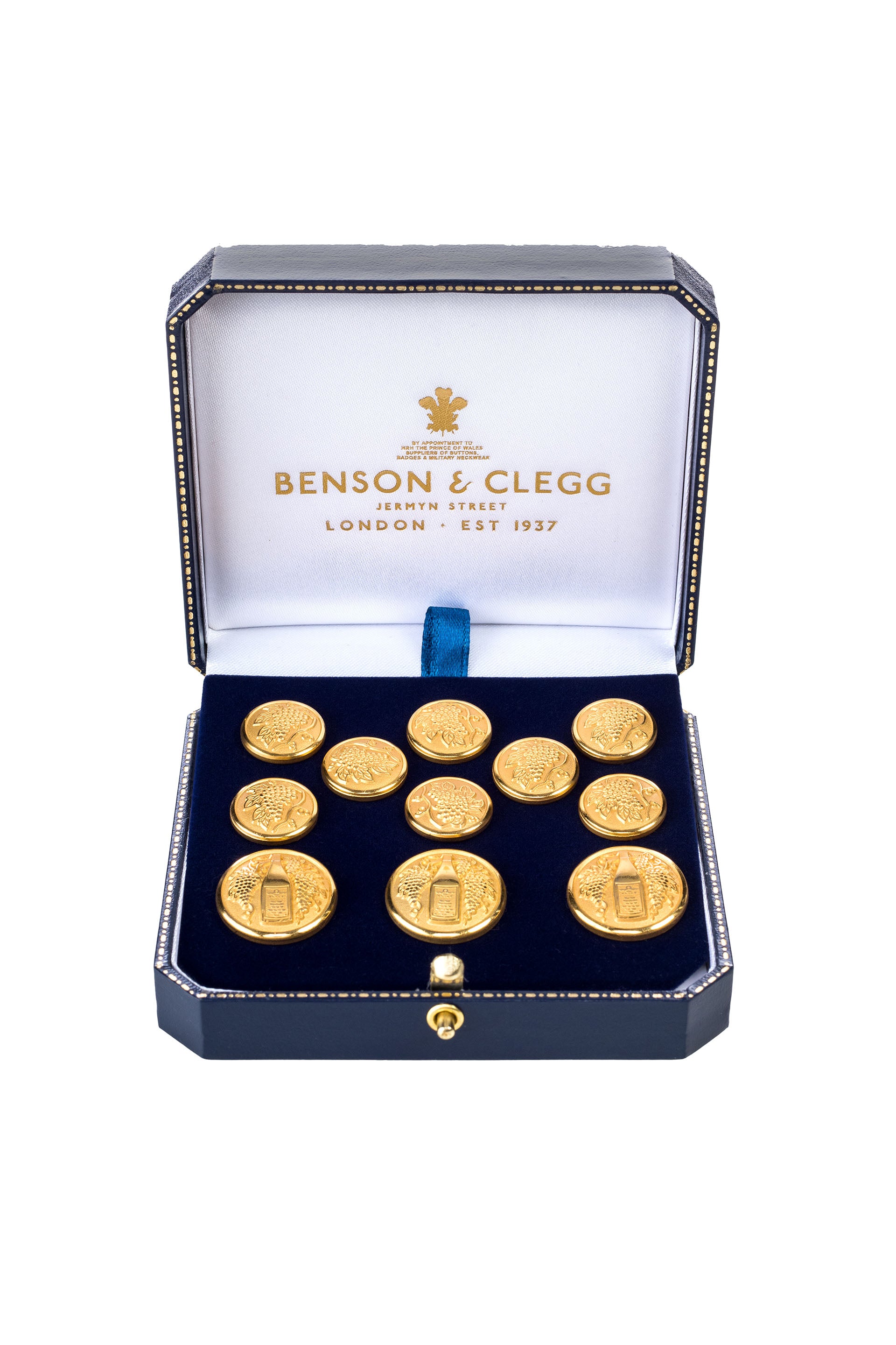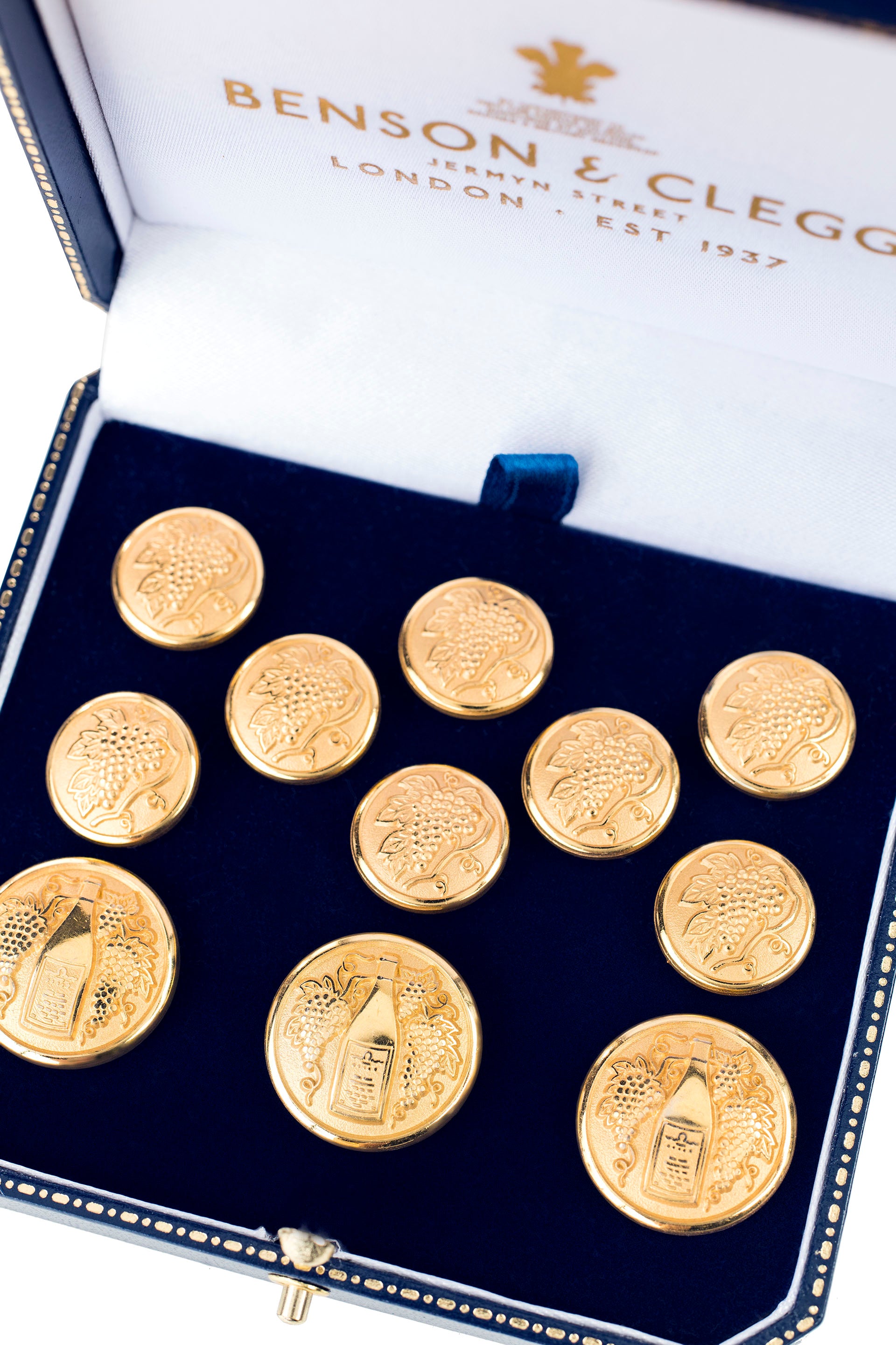 These buttons are made by Benson & Clegg in England and are gold plated.