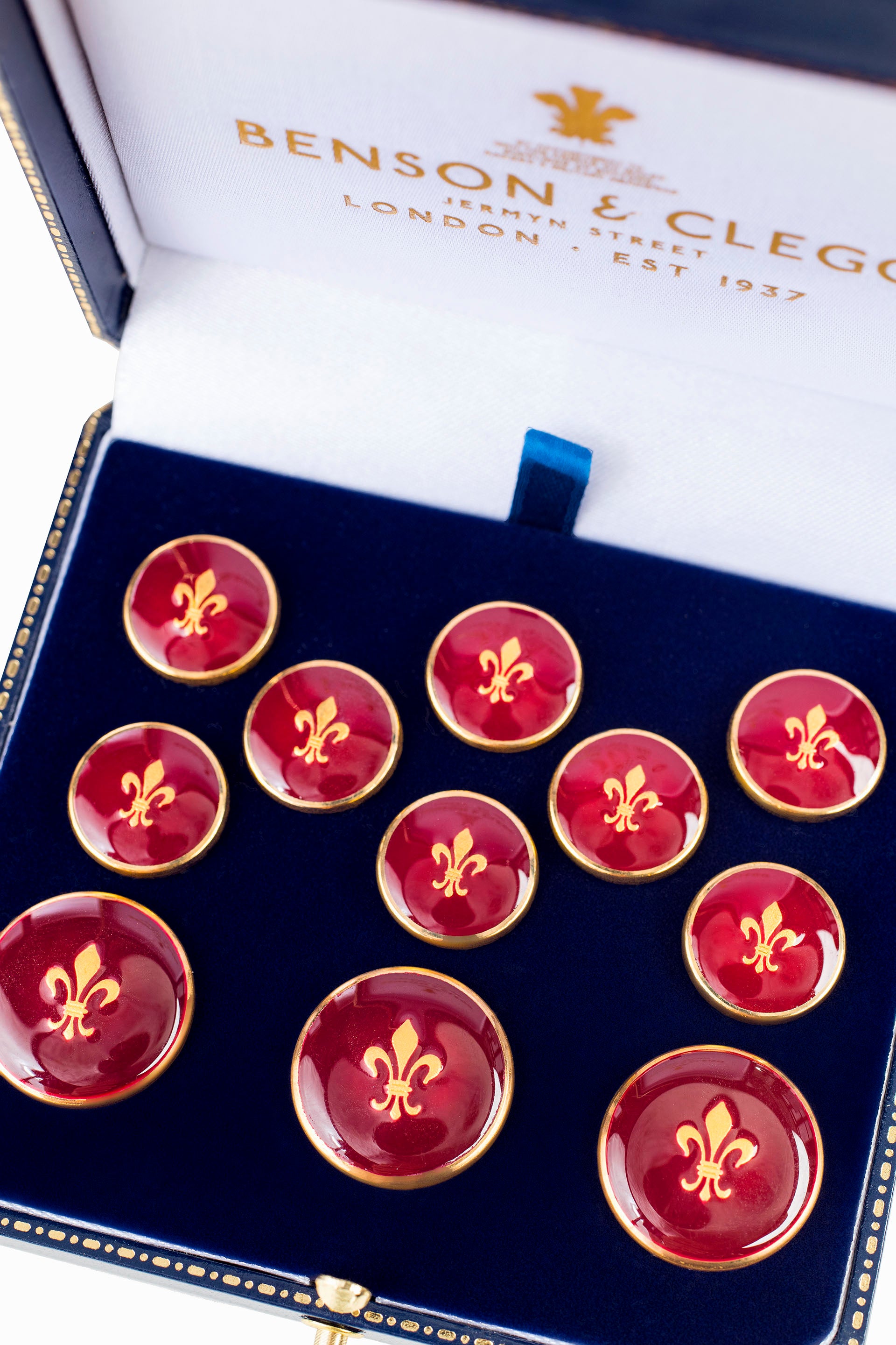 These buttons are manufactured by Benson & Clegg in England using traditional British techniques dating back to the 18th century.