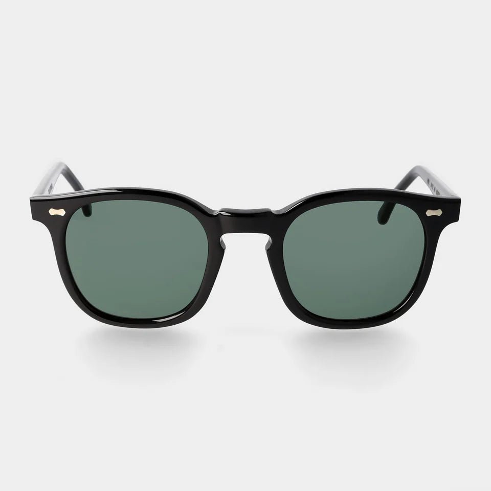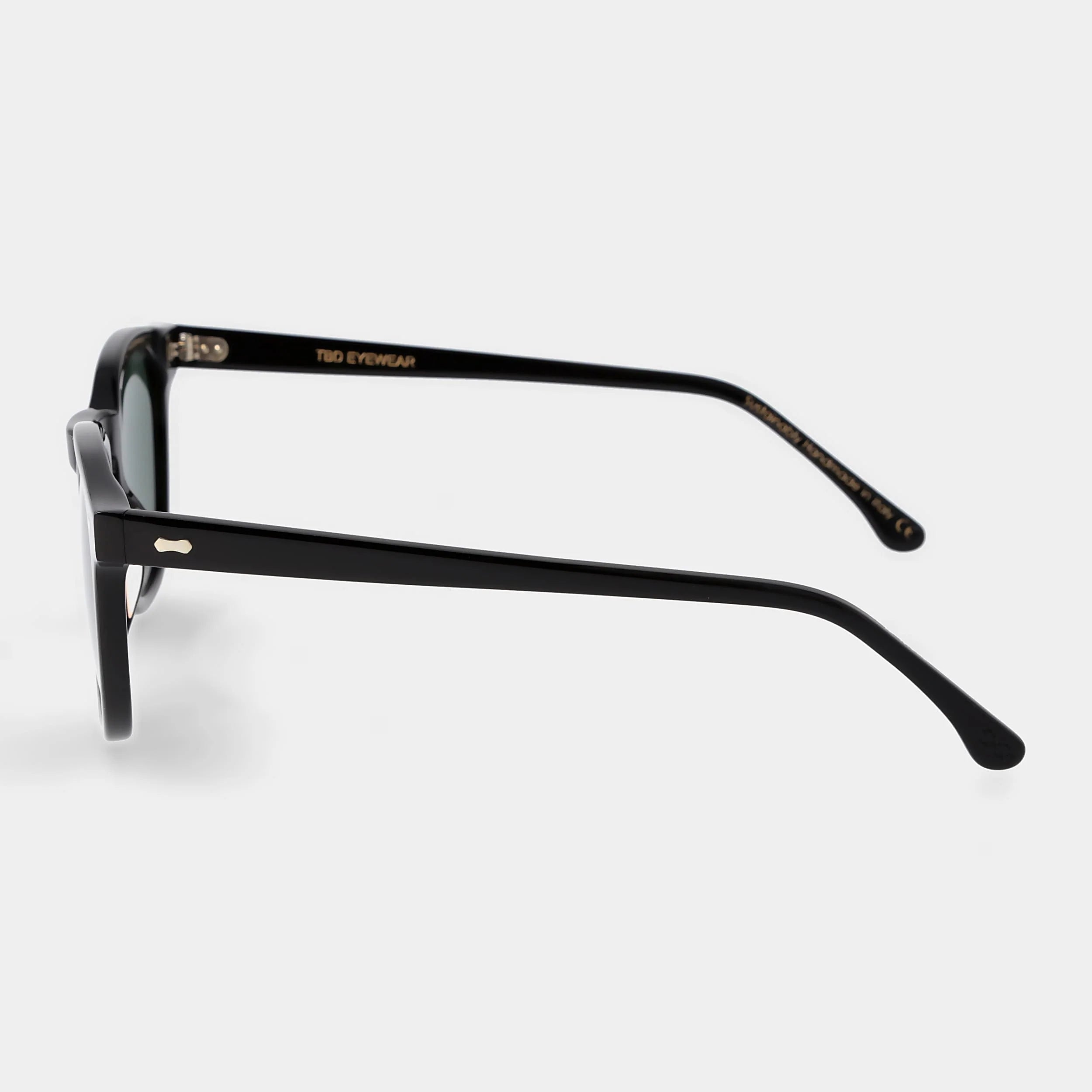 Sustainable and handmade in Italy, these sunglasses are made with a black bioacetate frame and bio-based green lenses. The square shape of the glasses also enhances the faces with round and oval lines.