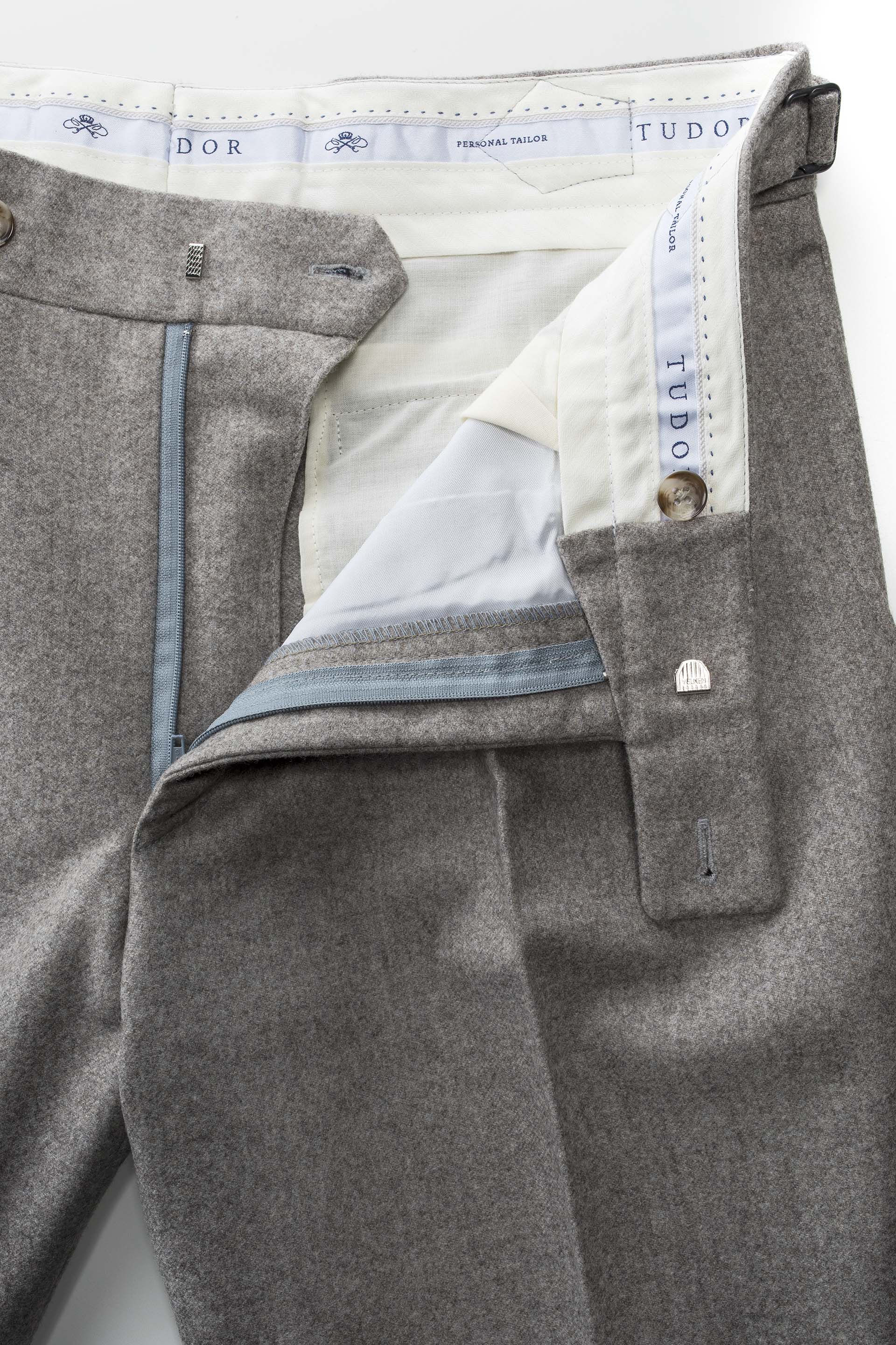This product is a contemporary reinterpretation of a classic model, being made with 2 pleats, 4cm cuffs and side adjusters for possible weight fluctuations.