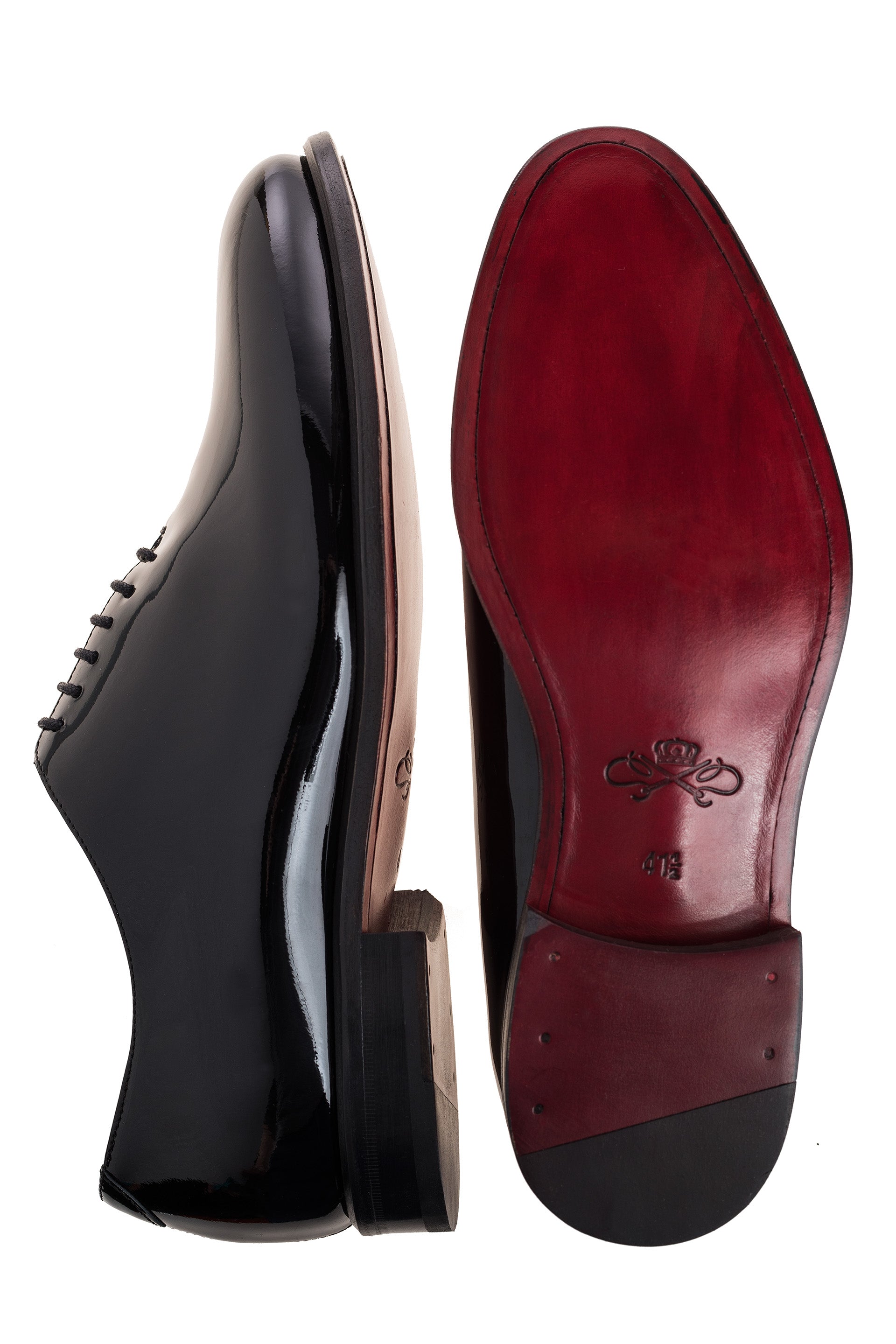 A formal outfit is not complete without a pair of classic patent Oxford shoes. Patent leather shoes are the signature of any true gentleman.