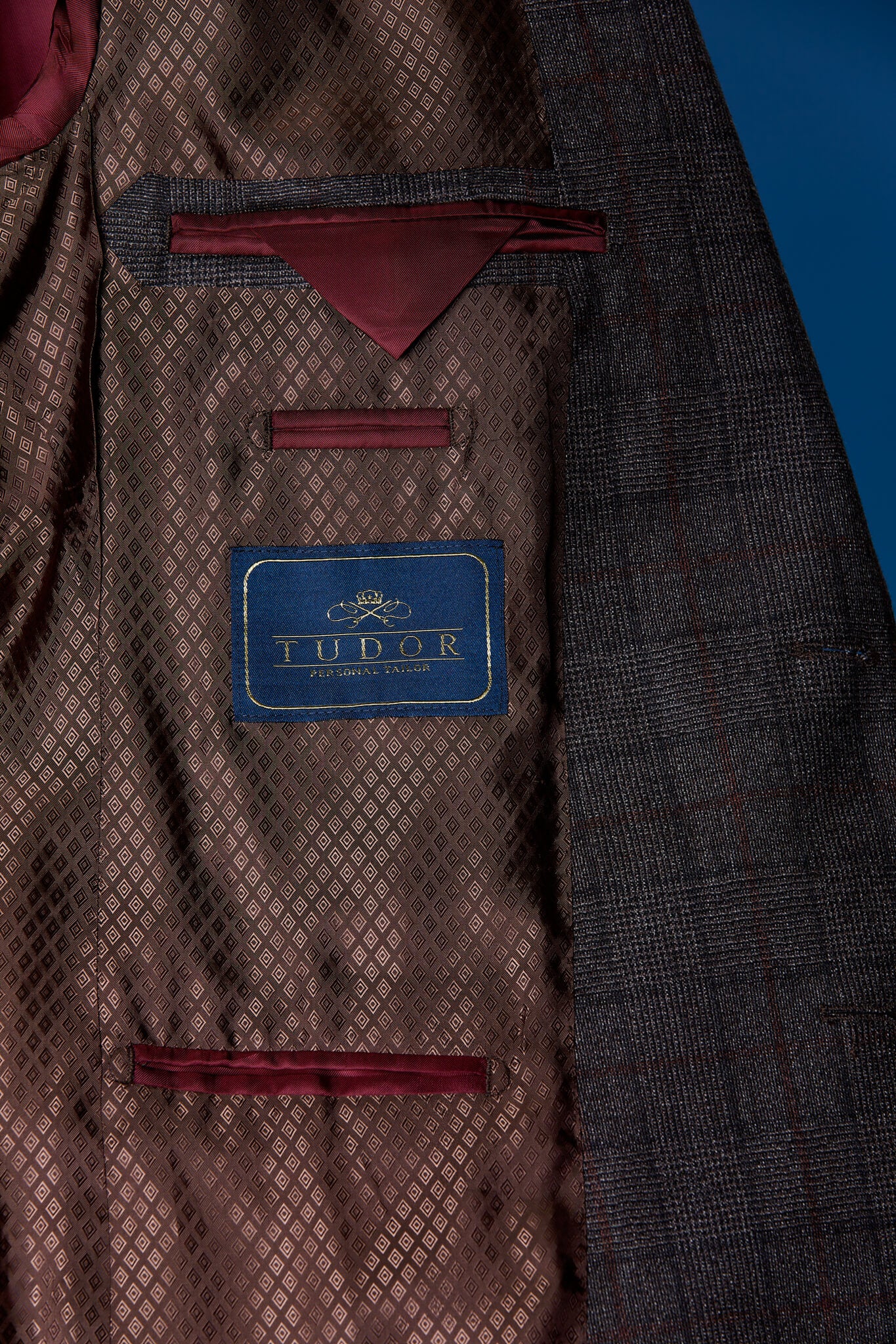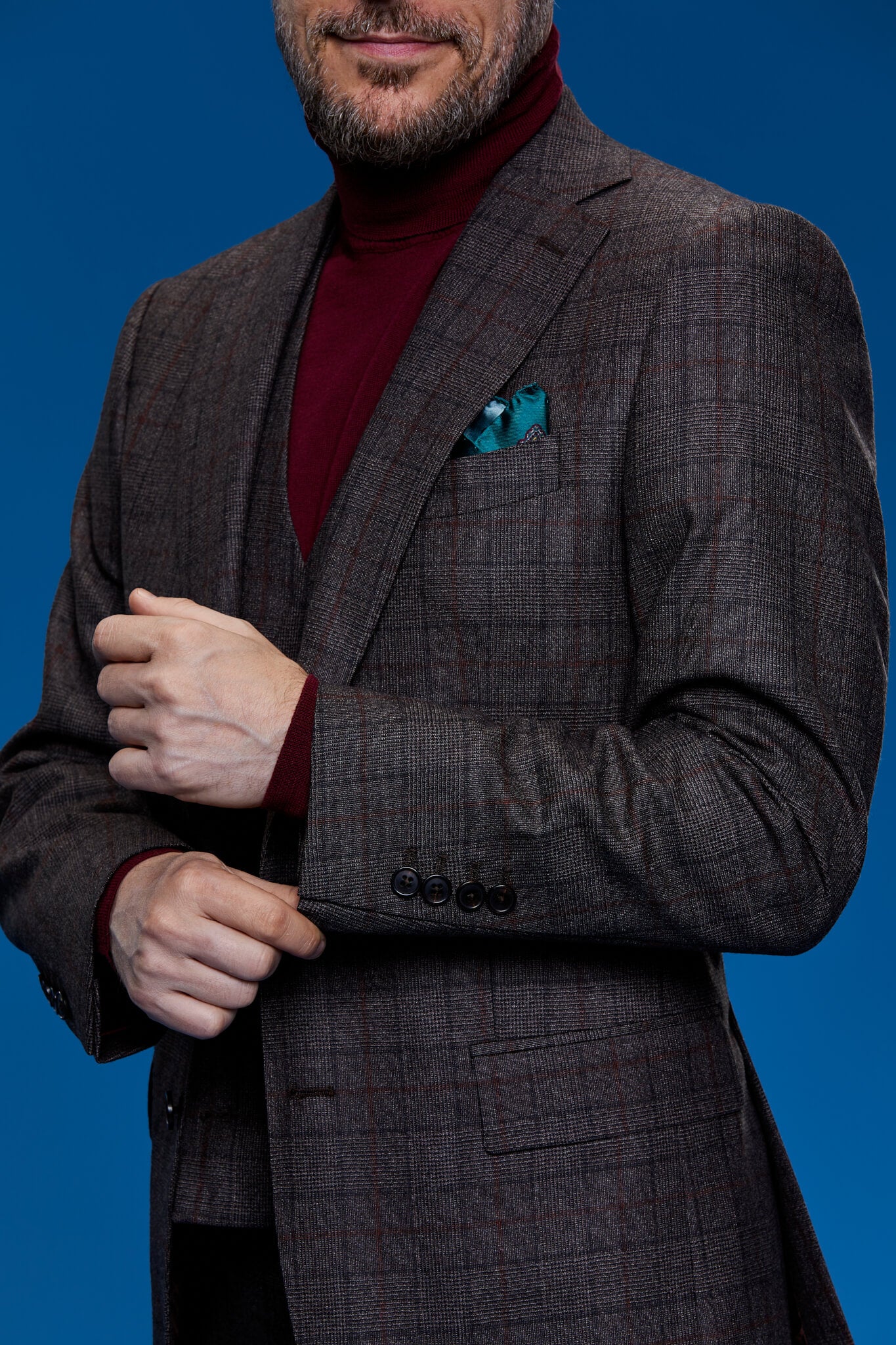 Costum în 3 piese, business-casual din lână cu pattern discret.