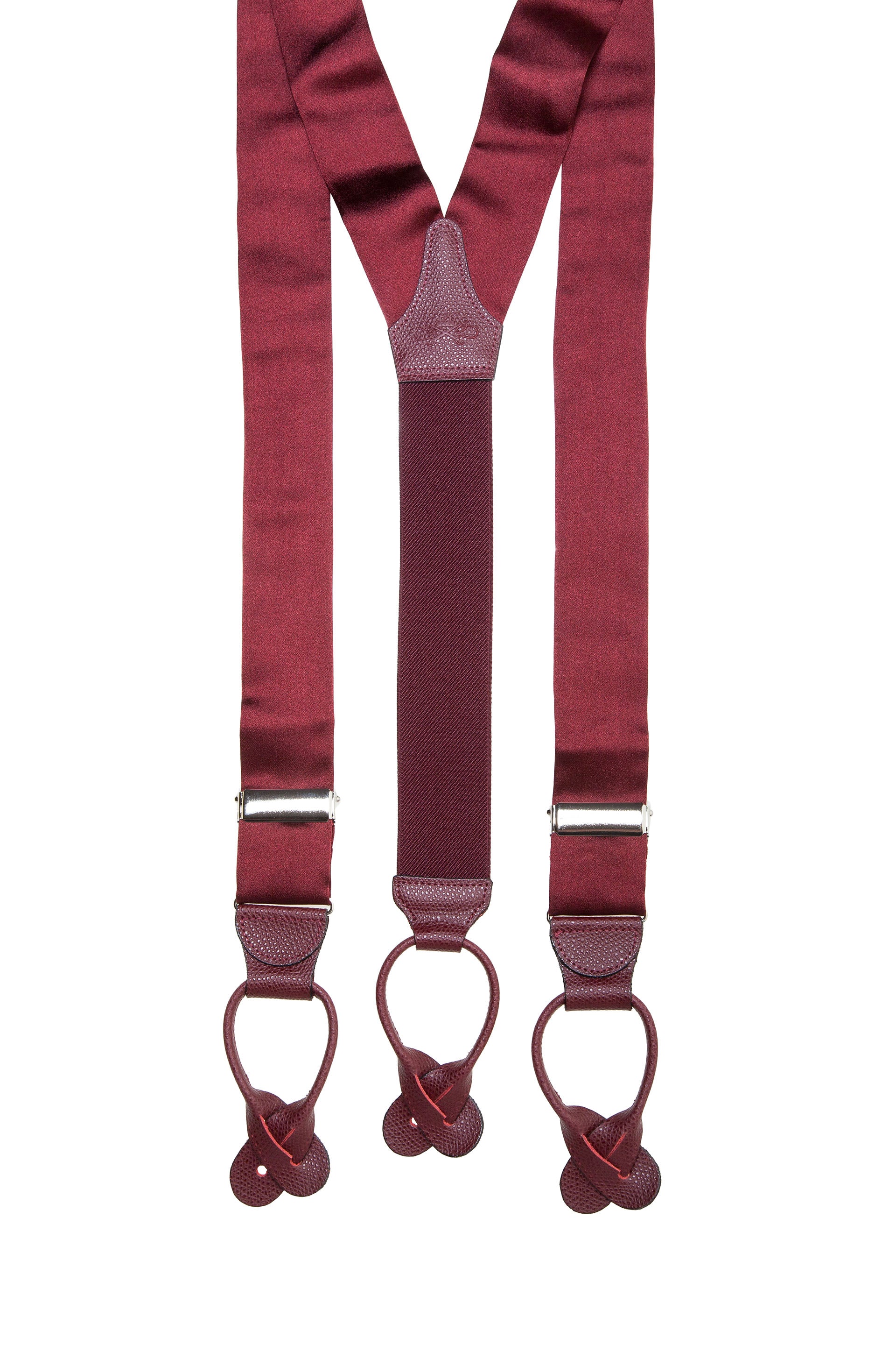 Bretele confectionate din matase naturala 100% de culoare grena, cu inchidere pentru nasturi.