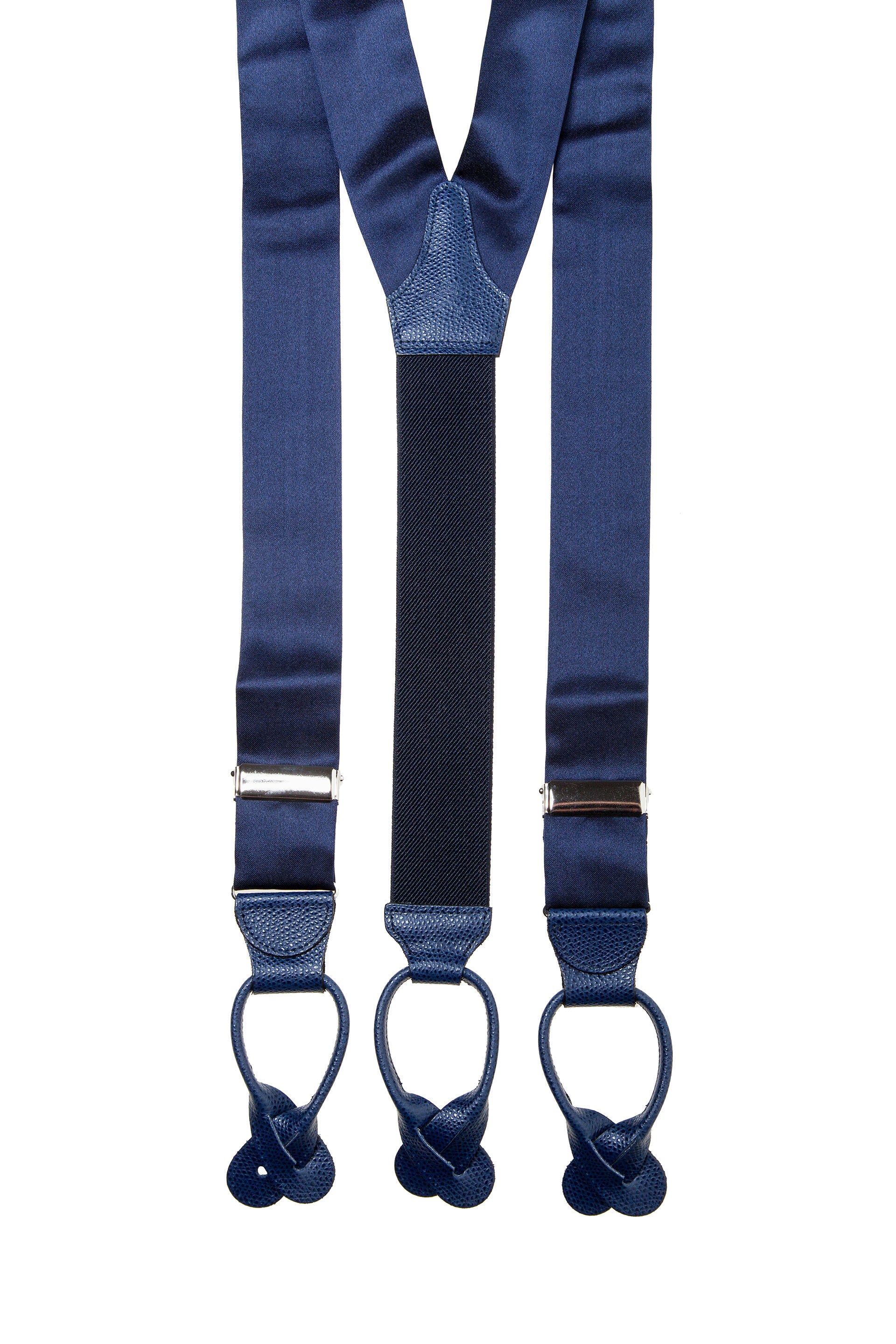 Bretele confectionate din matase naturala 100% de culoare bleumarin, cu inchidere pentru nasturi.