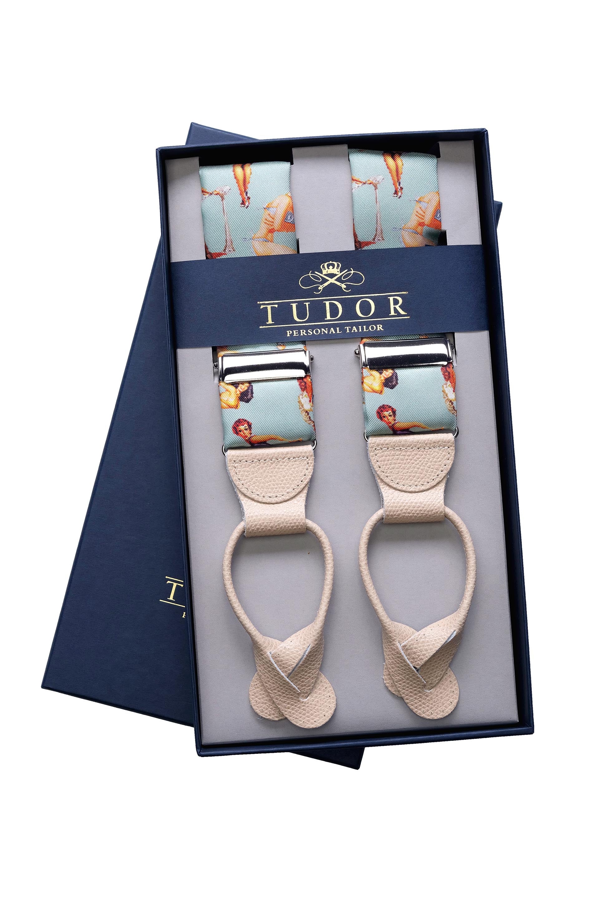 Perfecte pentru a aduce un strop de culoare și personalitate unei ținute smart-casual, bretelele Sirena sunt detaliul care transformă orice outfit banal într-o declarație de stil îndrăzneț și rafinat. Livrate în ambalajul albastru-navy Tudor Personal Tailor, ele devin cadoul ideal pentru cei ce adoră accesorii cu o poveste și un design aparte.