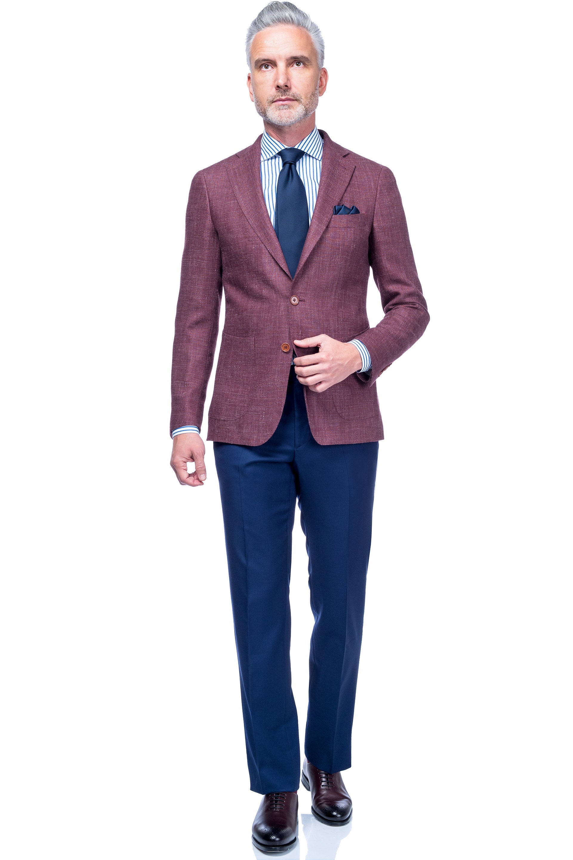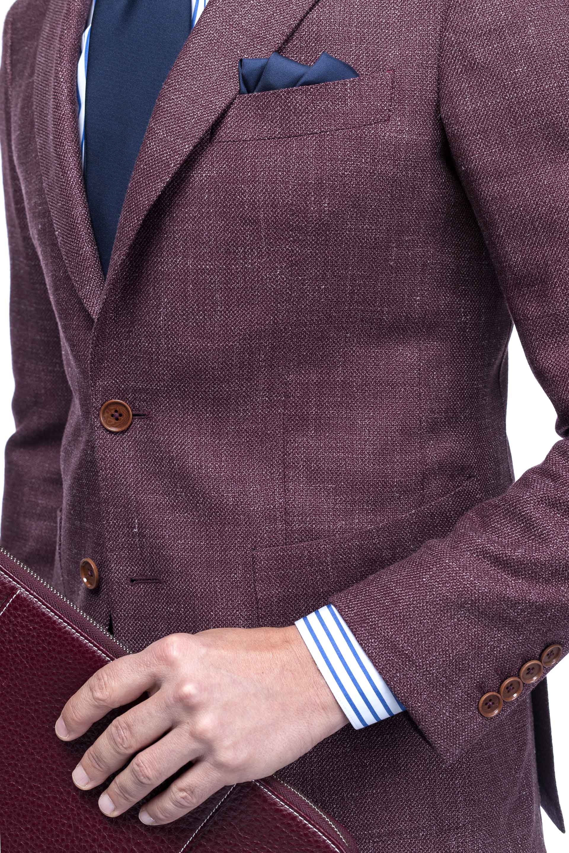 Compoziția din lână, mătase și in, îl face purtabil în zilele toride din sezonul cald.