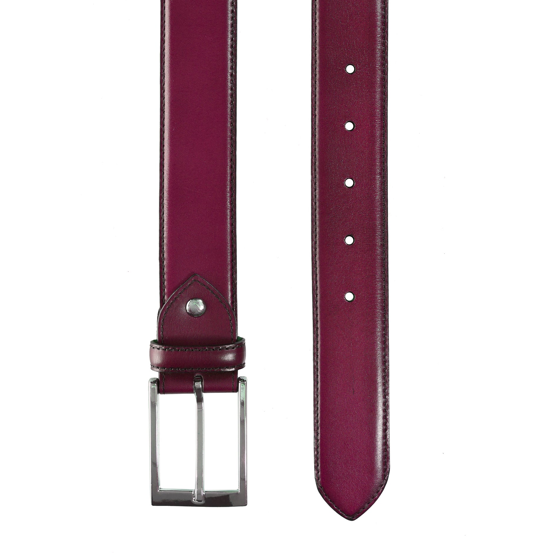 Curea confectionata din piele 100% naturala, in nuanta burgundy, cu catarama metalica argintie. Lungimea se poate adapta in functie de talie, iar latimea acesteia este de 3.5 cm.