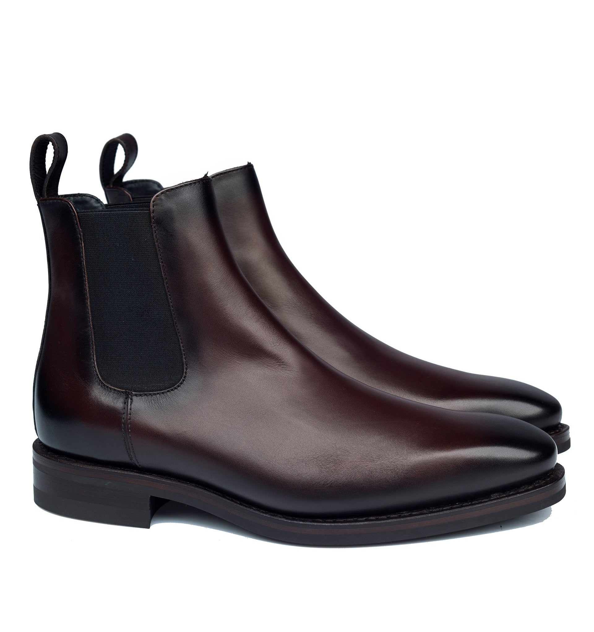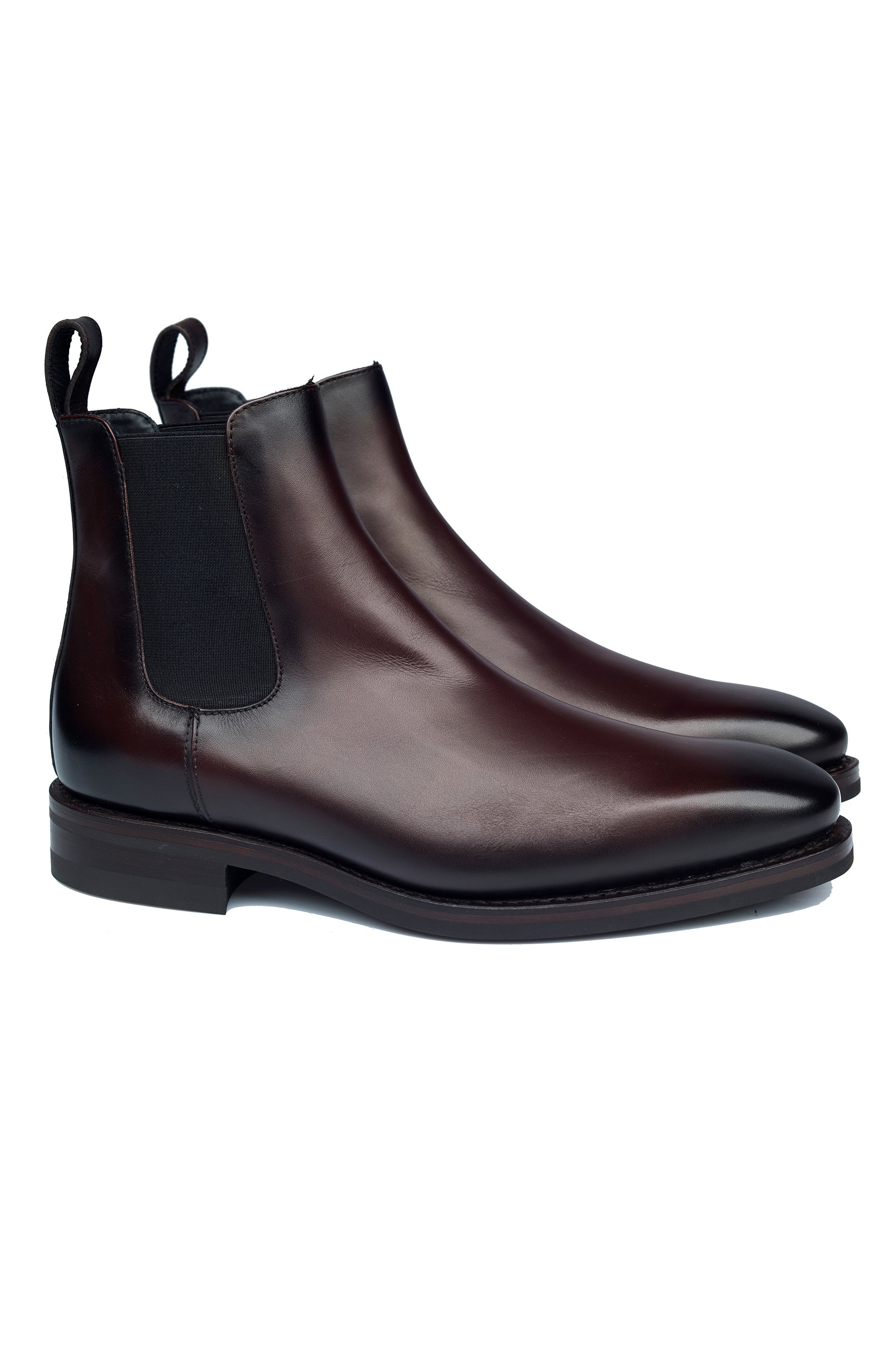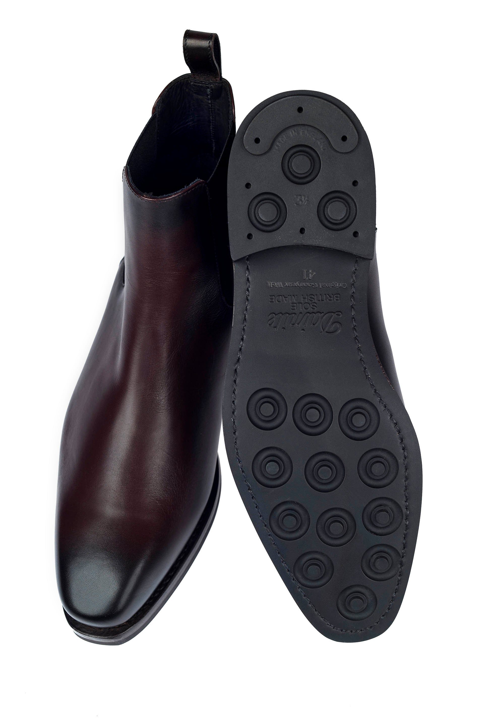 Ghetele clasice si elegante pentru tinutele ce trec de bariera casualului. Construite pe un calapod mai elegant si modern din piele de vitel cu efect de burnish adauga look-ului un plus de distinctie. Talpa Dainite ce reprezinta un cauciuc aplicat peste talpa de piele cusuta si construita Goodyear, le da o durabilitate mare in timp si la uzura.