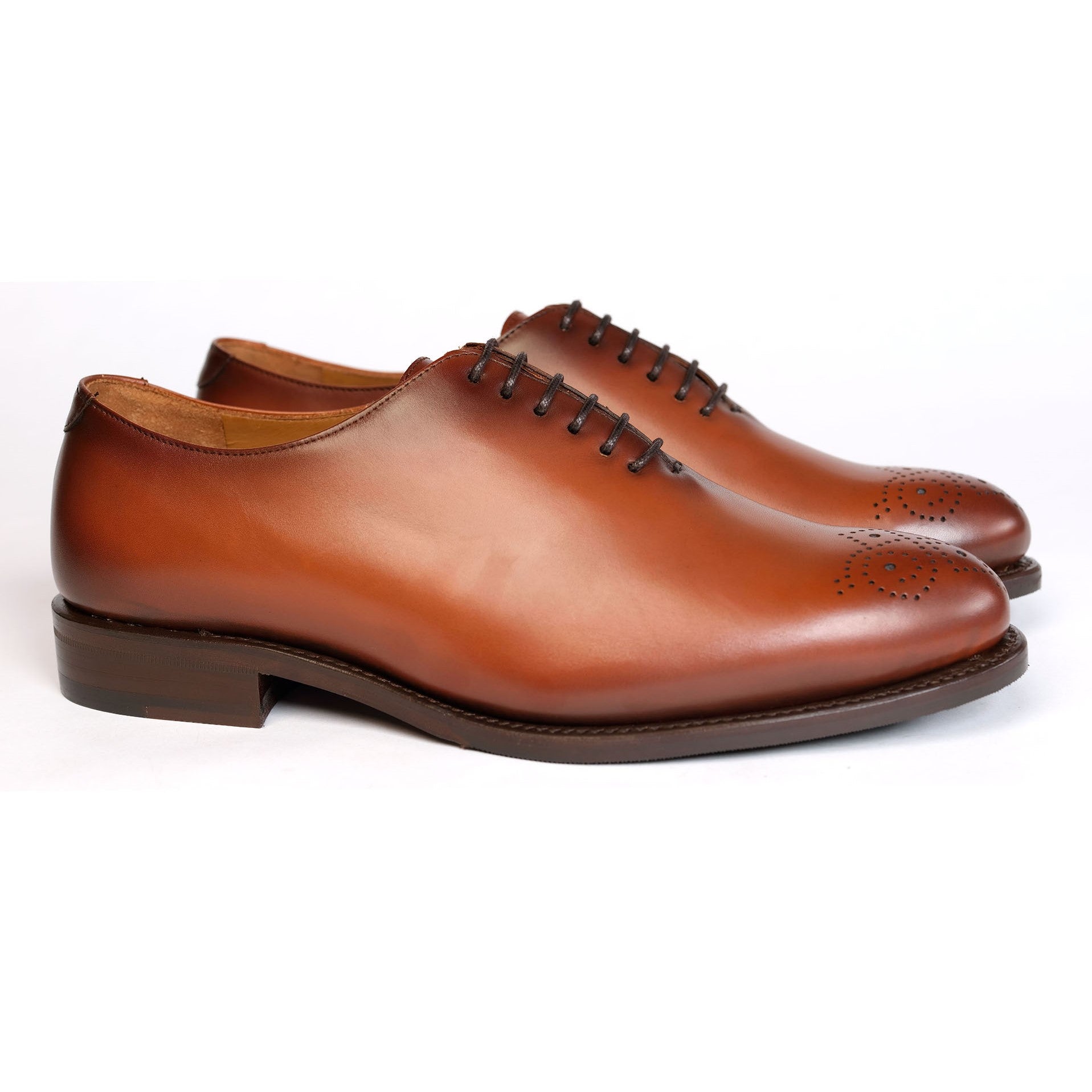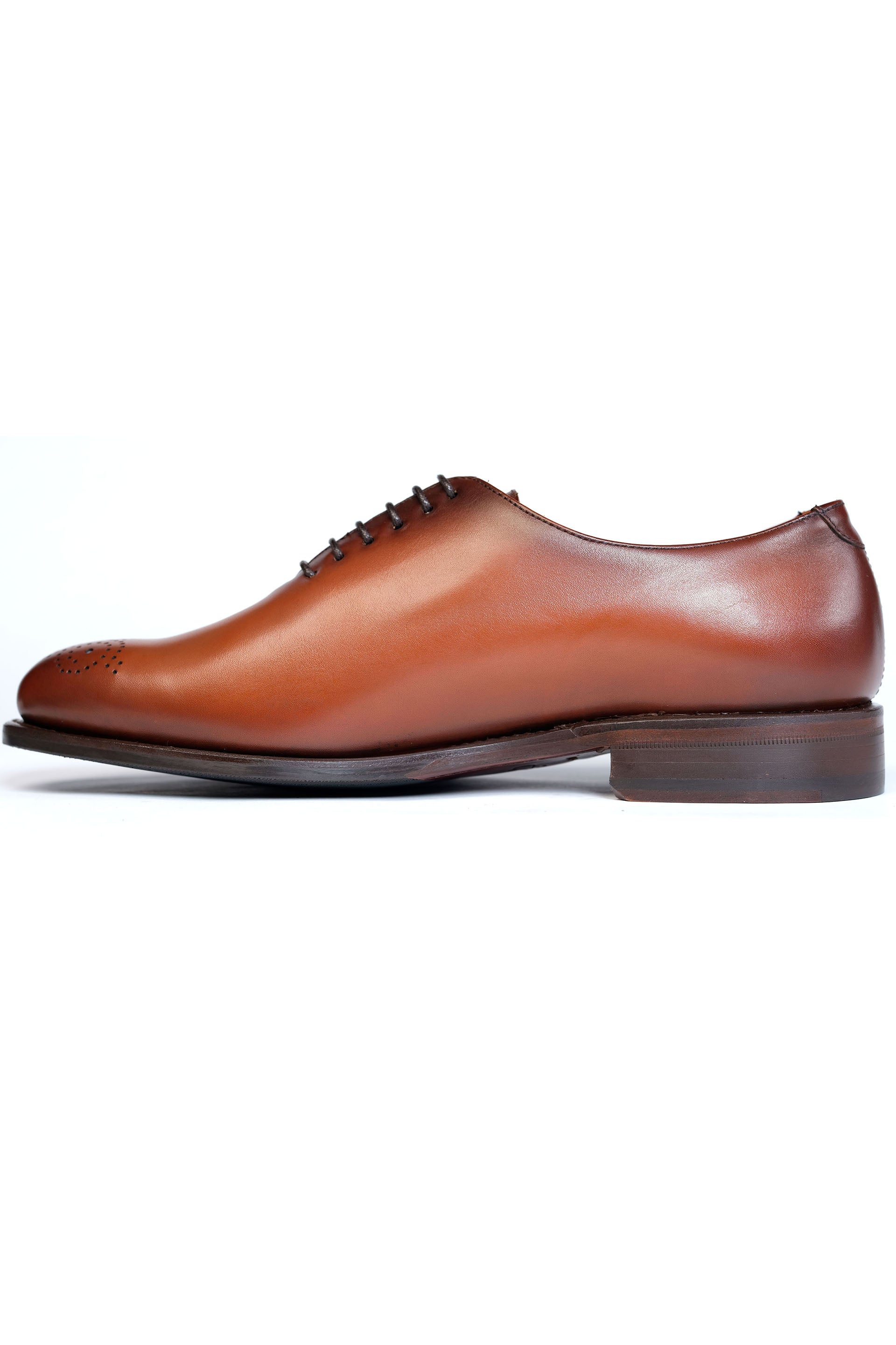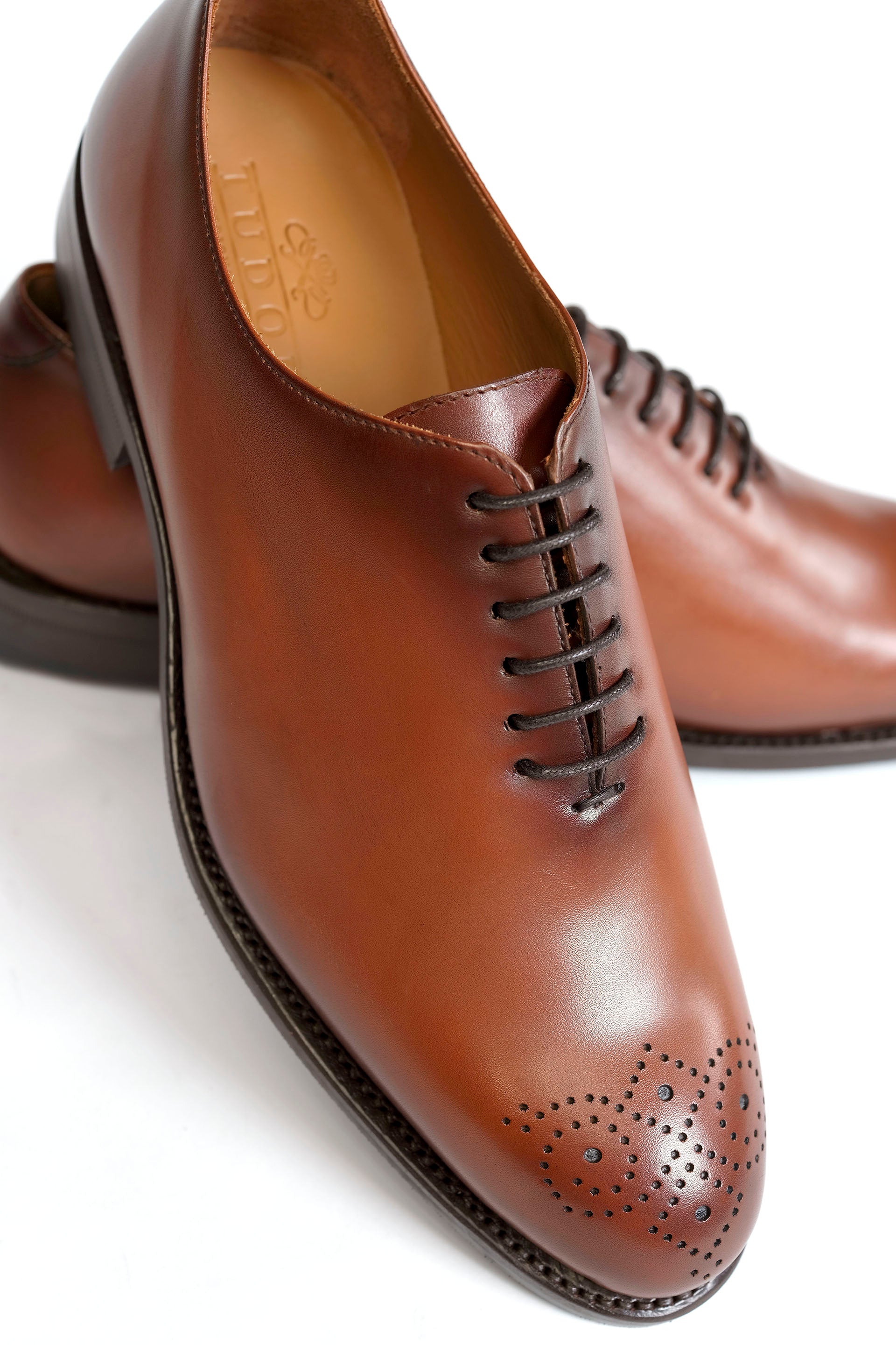 Pantofii sunt o pereche de oxford wholecut brown formidabili, prelucrati manual cu o broderie stilata pe bombeul pantofului. Pantofii wholecut sunt considerati printre cei mai formali pantofi datorita notei incontestabile de rafinament si eleganta pe care o ofera purtatorului.