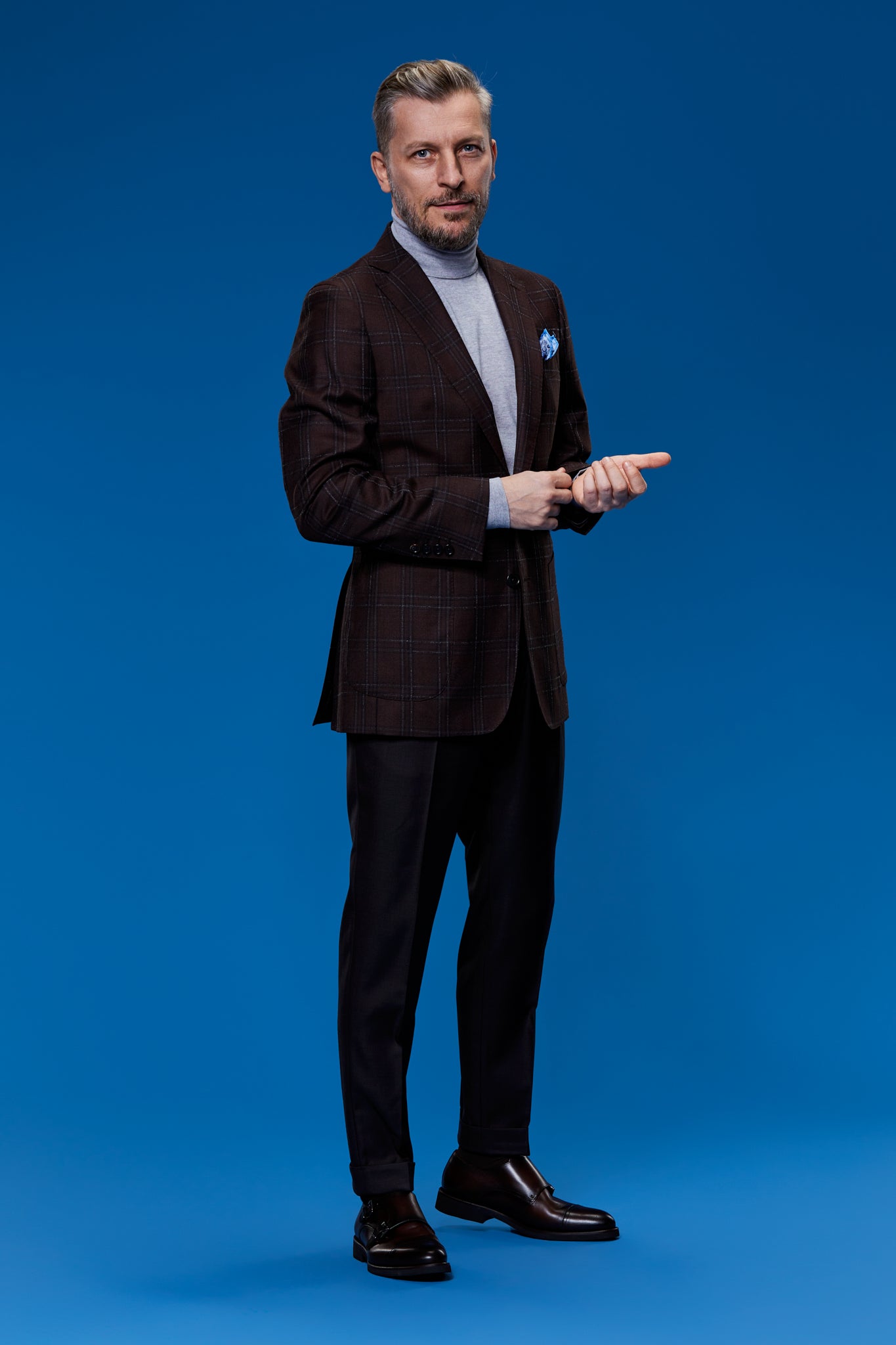 Sacou casual din stofă de lână 130Superfine, cu pattern discret in carouri fine, versatil în ținute business-casual.