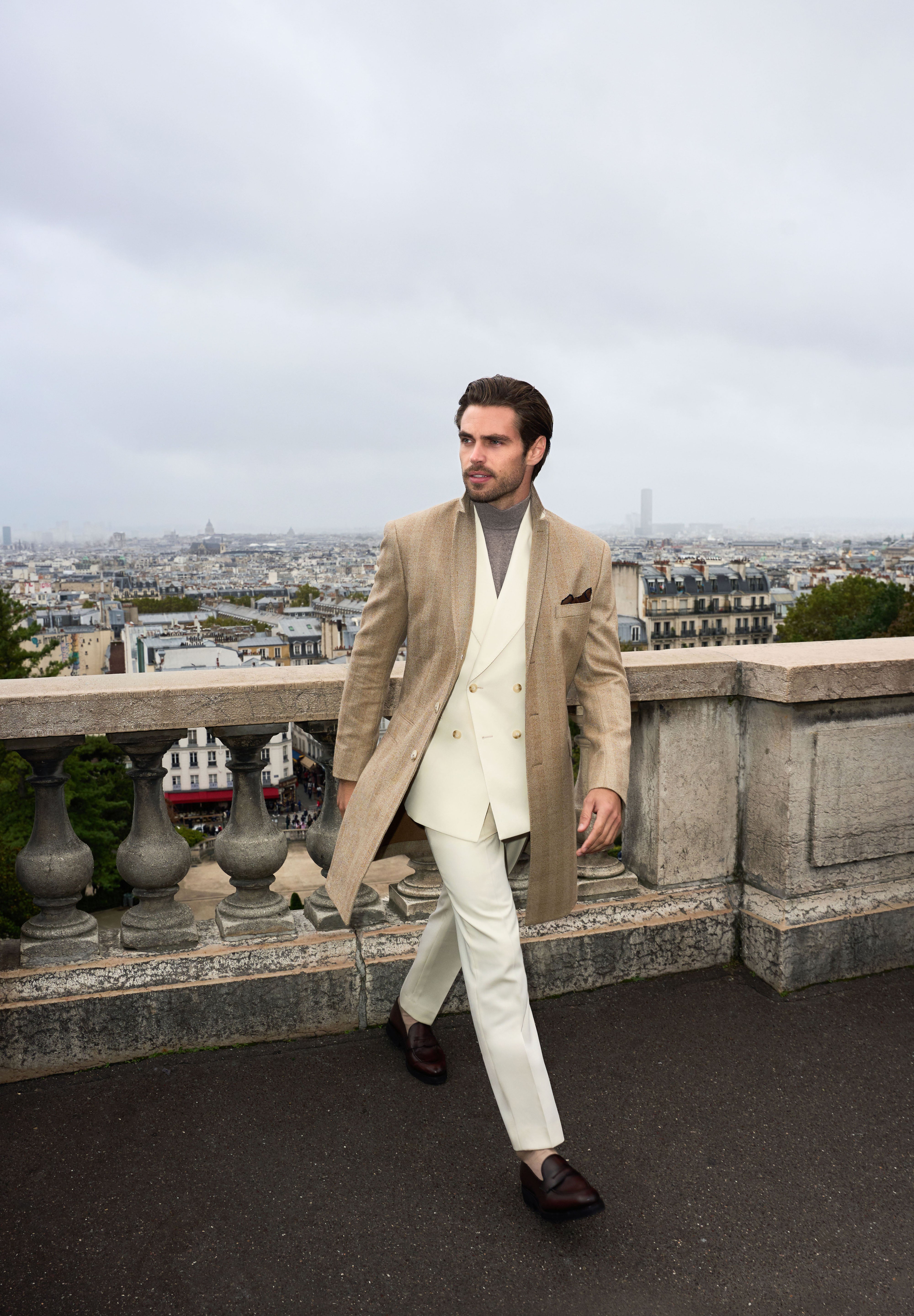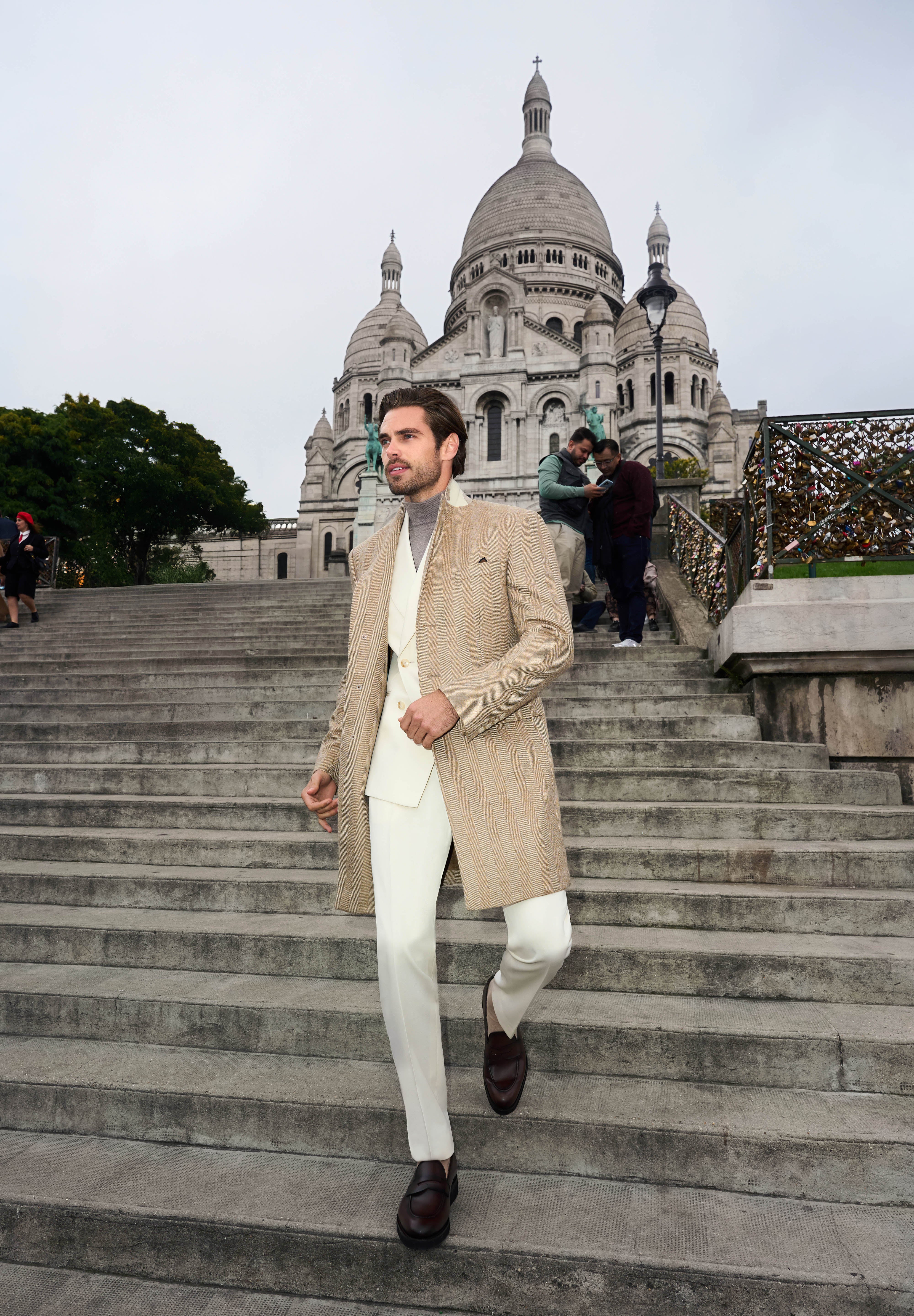 Paltonul Montmartre este o piesă rafinată, cu croială clasică, într-o nuanță deschisă de bej, având un model discret în dungi, care îi conferă un aer elegant și subtil.