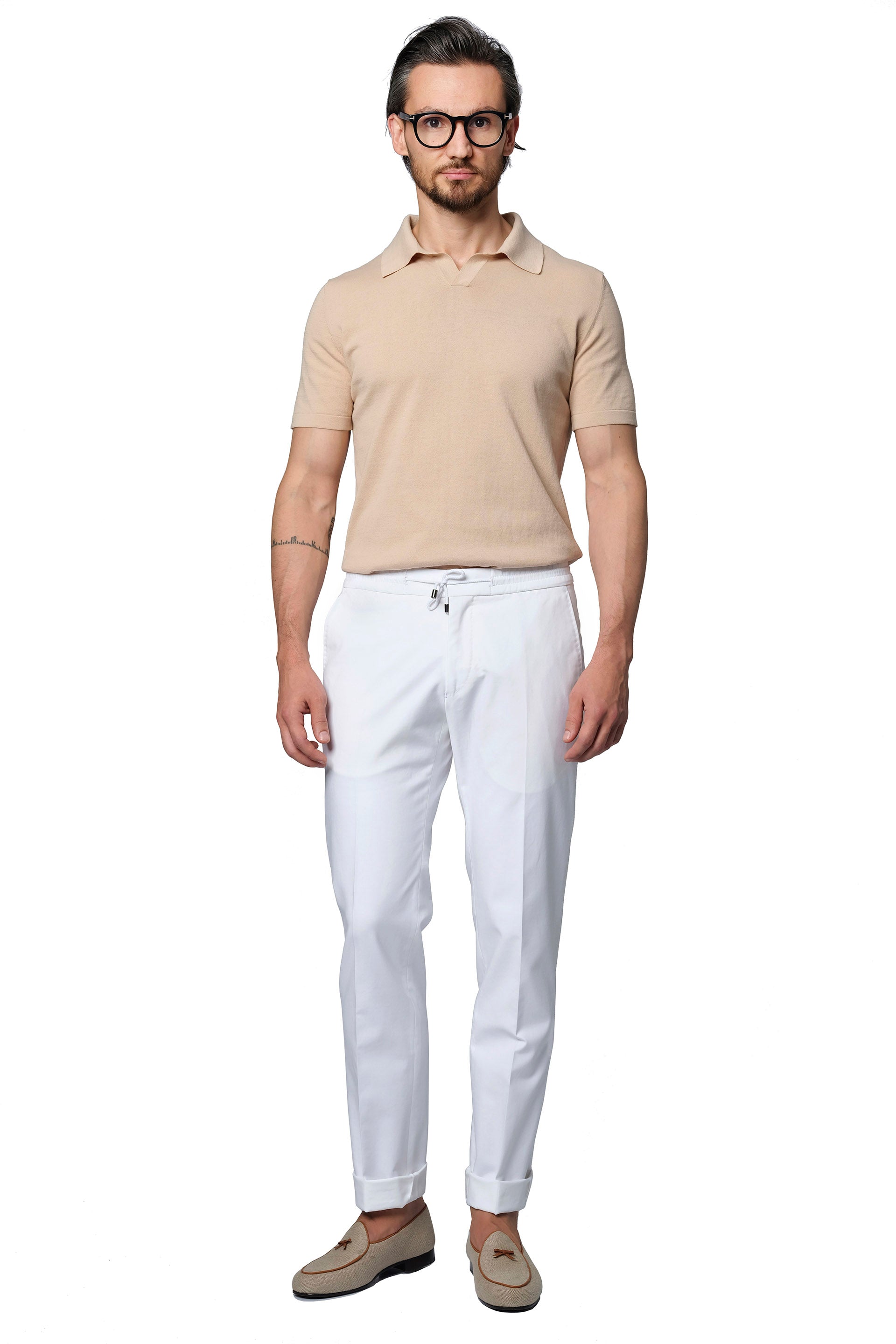 Acest produs este o reinterpretare contemporană a unui model clasic, fiind realizat cu două falduri, manșete de 4 cm și ajustoare laterale pentru eventuale fluctuații în greutate.