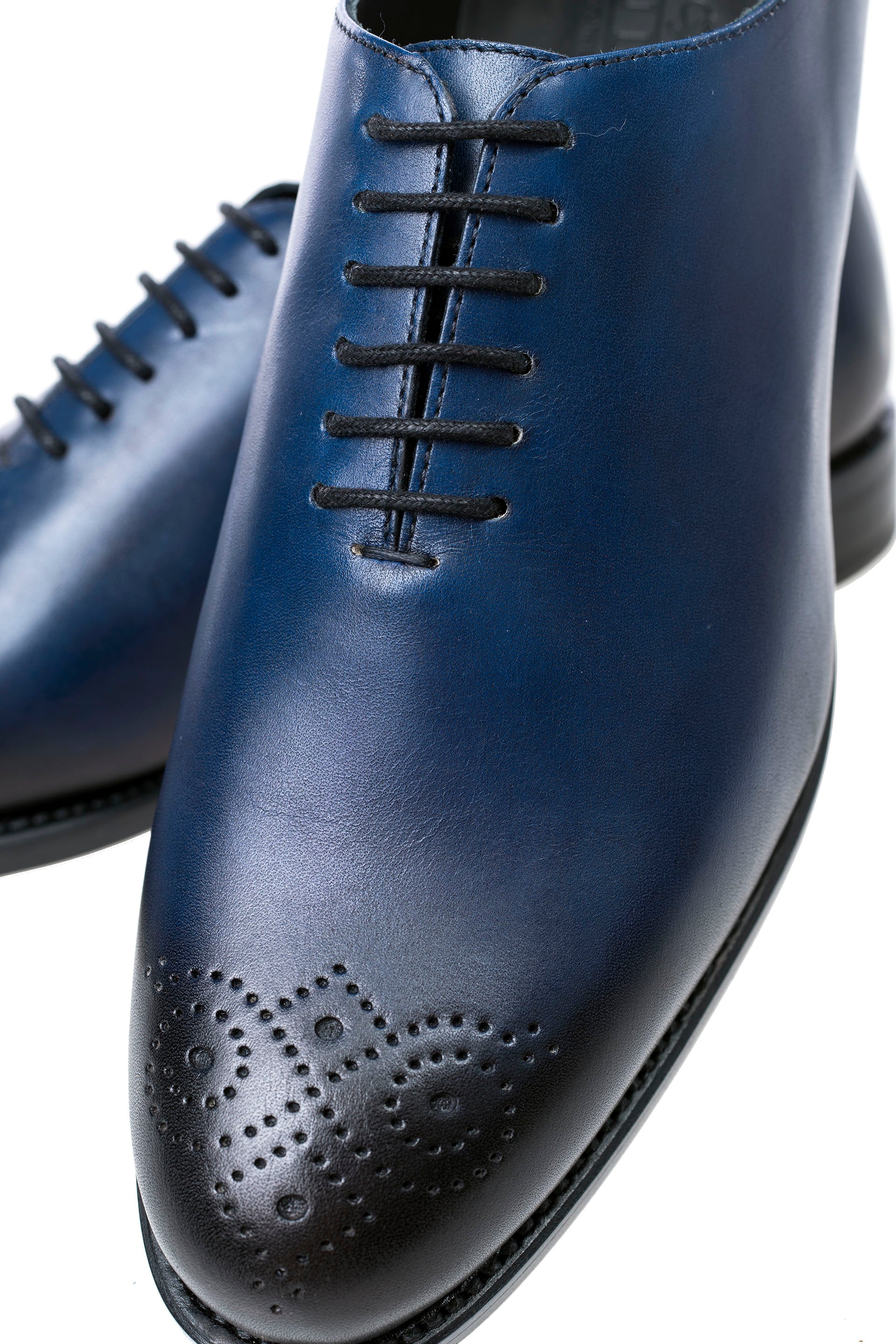 Pantofii Percival sunt o pereche de oxford whole cut bleumarin formidabili, prelucrati manual cu o broderie stilata pe bombeul pantofului. Pantofii whole-cut sunt considerati printre cei mai formali pantofi datorita notei incontestabile de rafinament si eleganta pe care o ofera purtatorului.