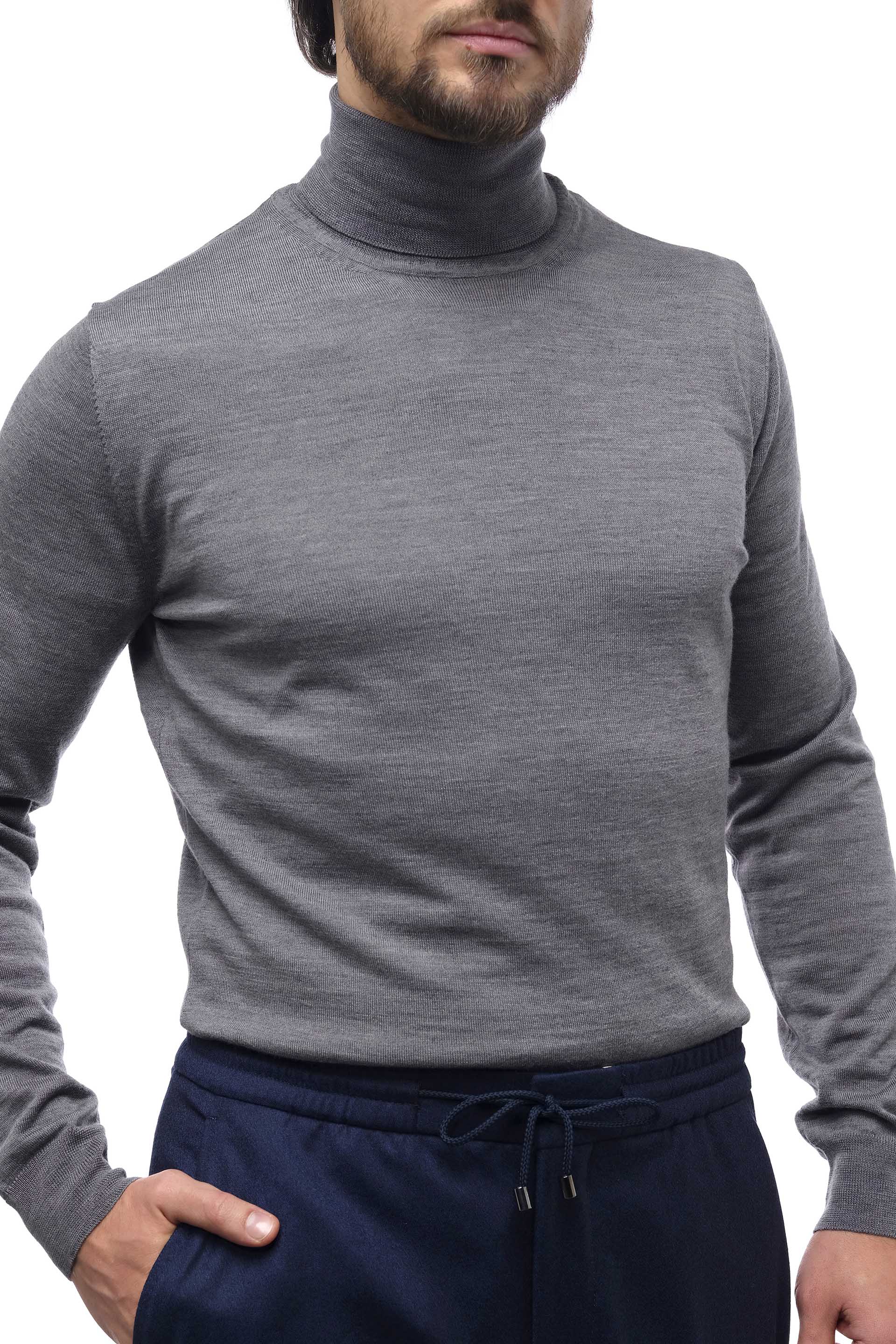 Pulover din lână merinos 100%, cu guler tip helancă.
