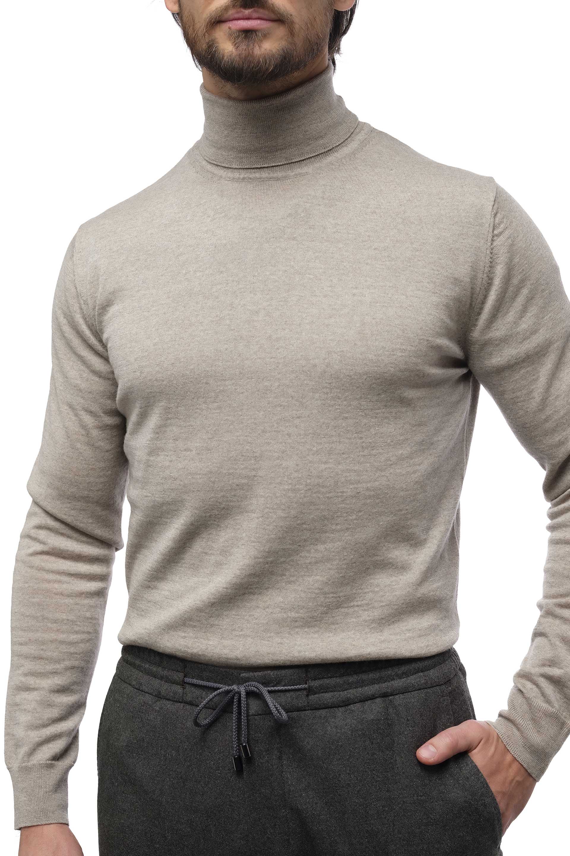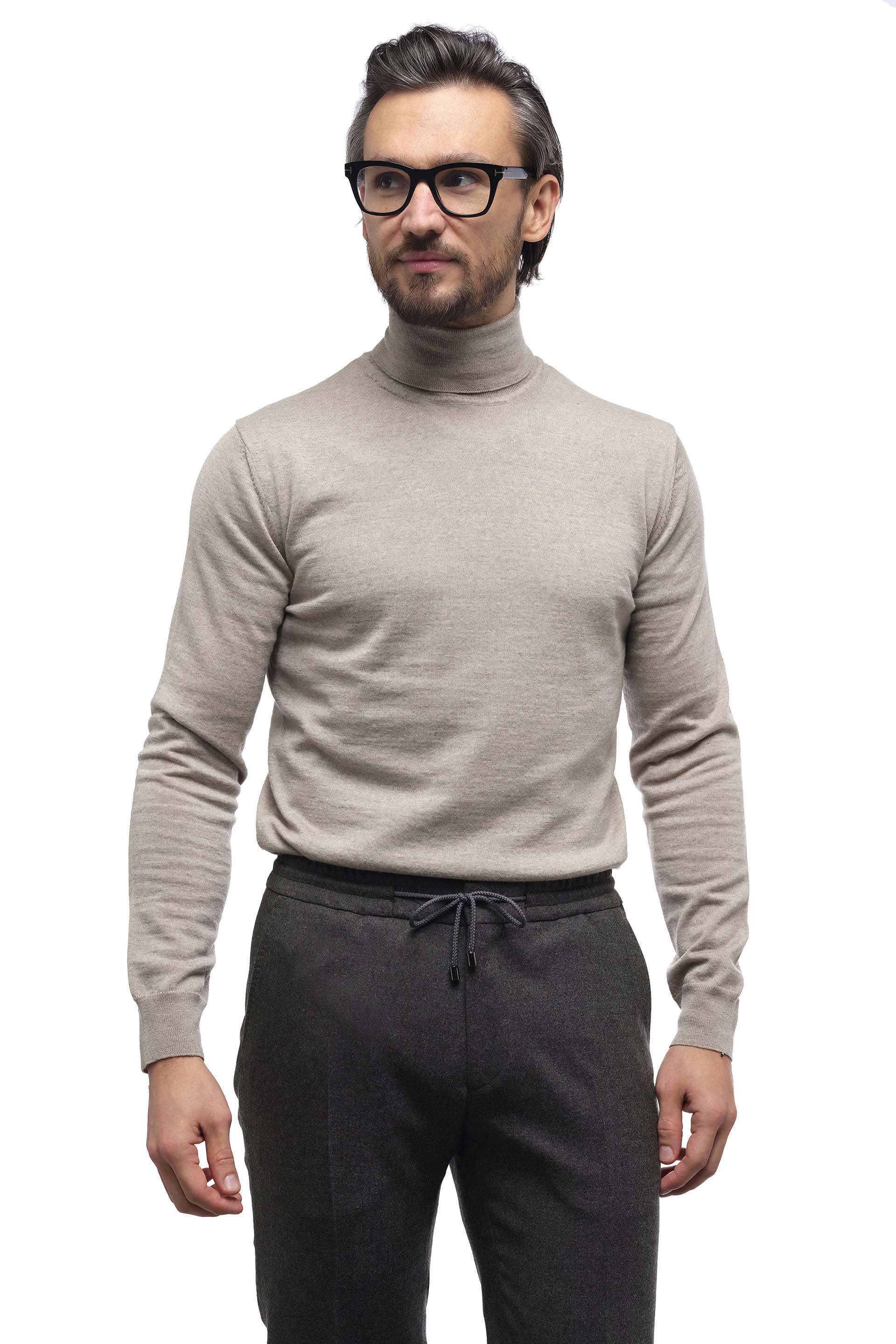 Pulover din lână merinos 100%, cu guler tip helancă.