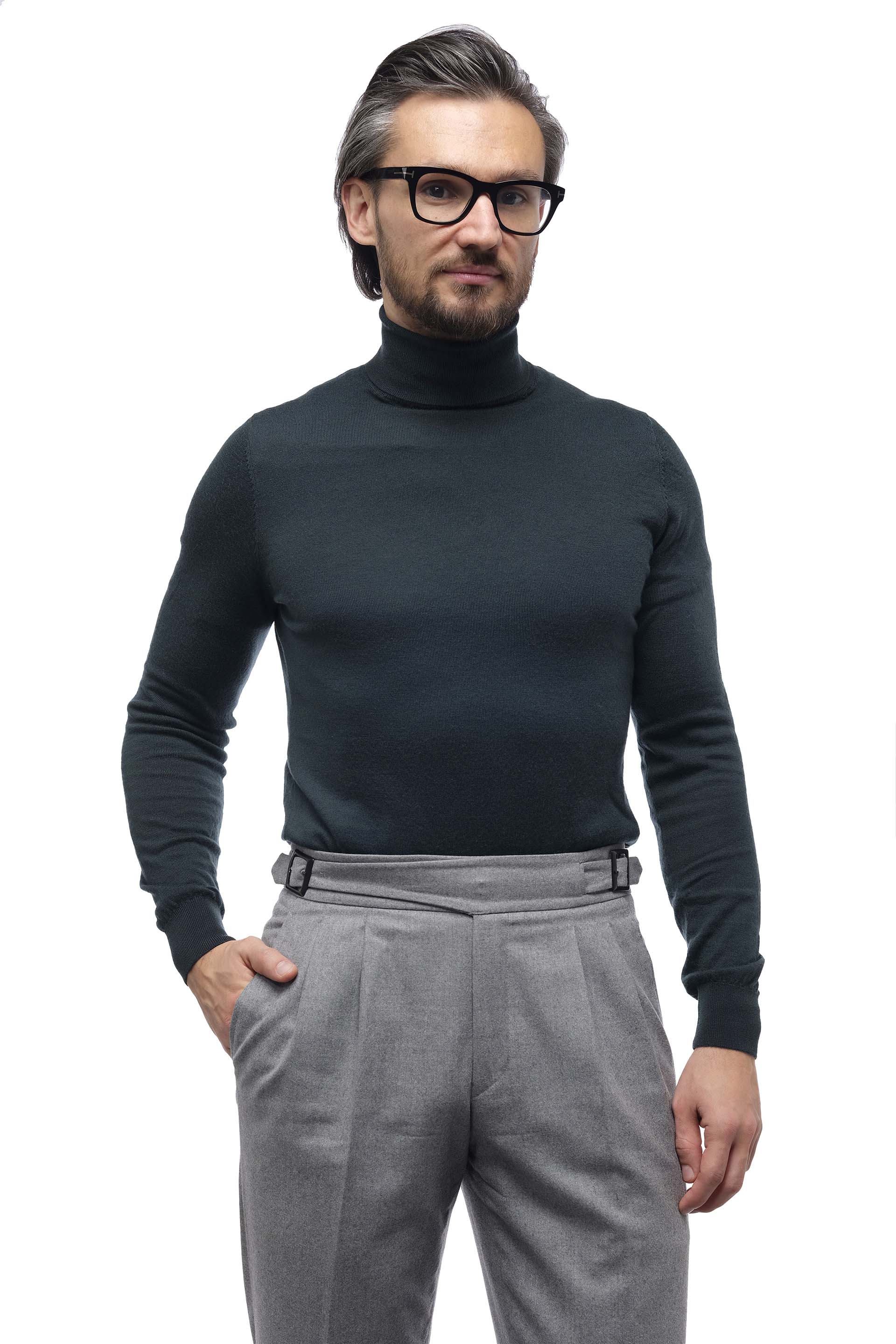 Pulover din lână merinos 100%, cu guler tip helancă.