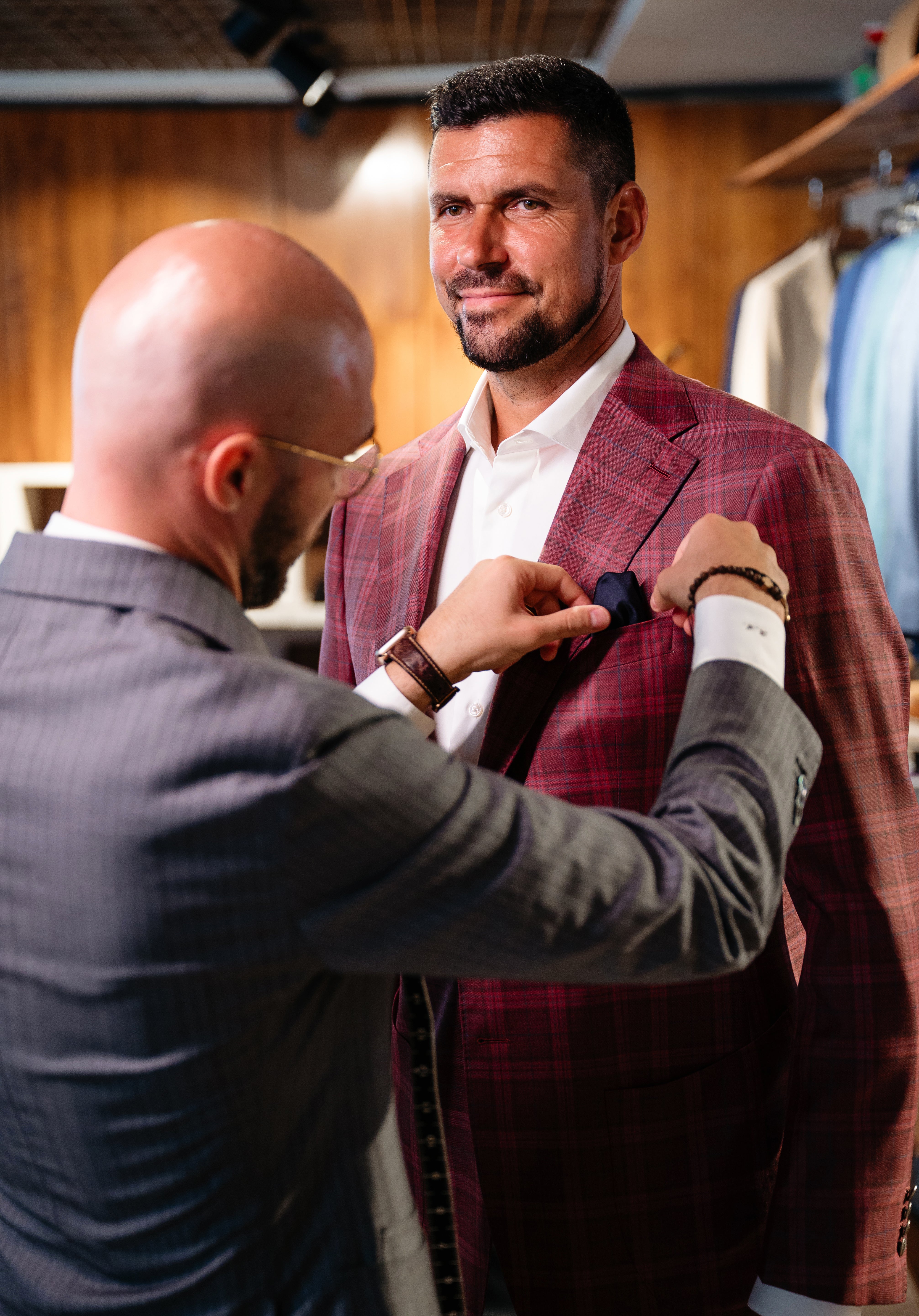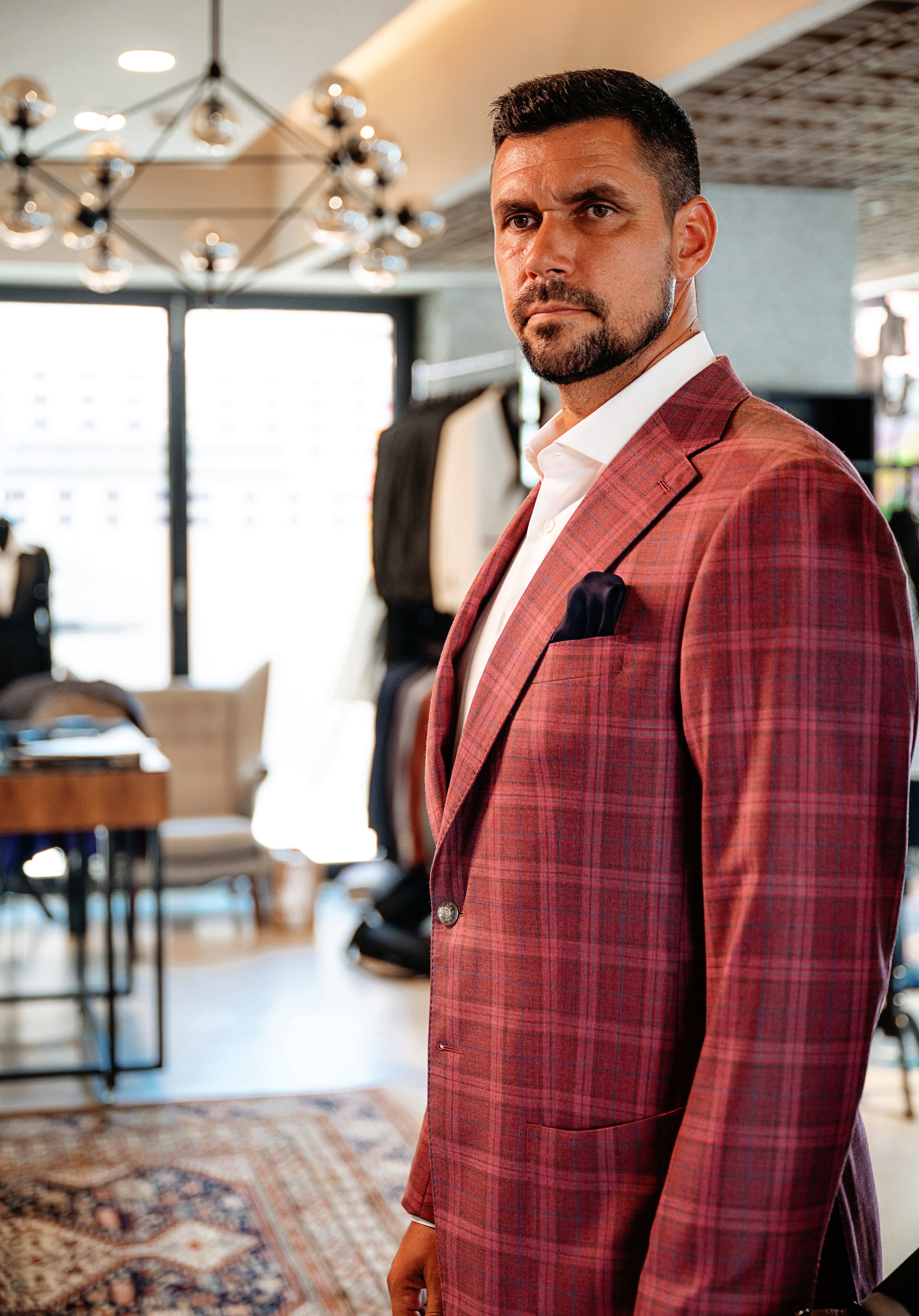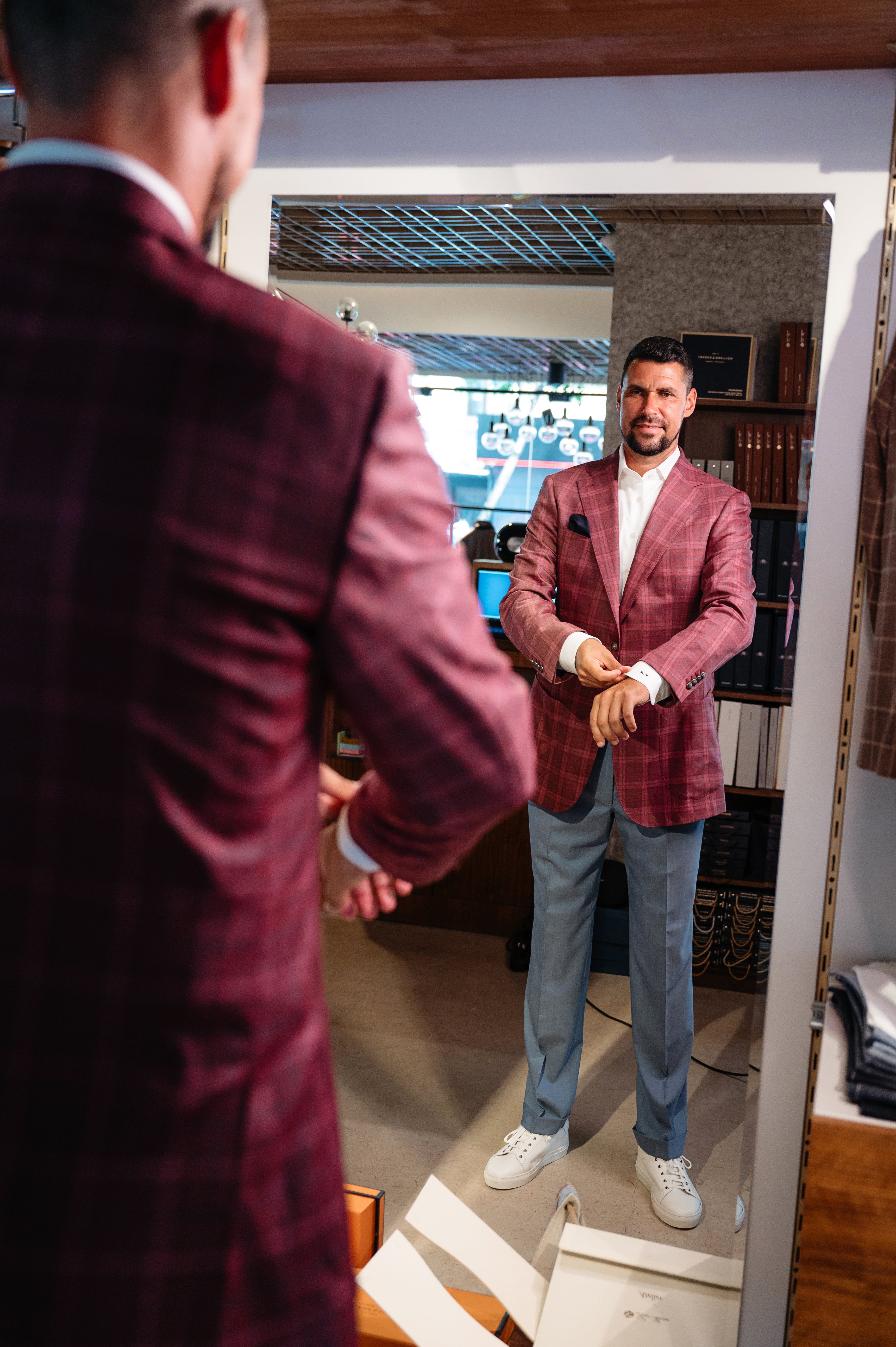 Te invităm cu drag în showroom-urile noastre pentru a crea acest sacou întocmai pe măsurile și preferințele tale!