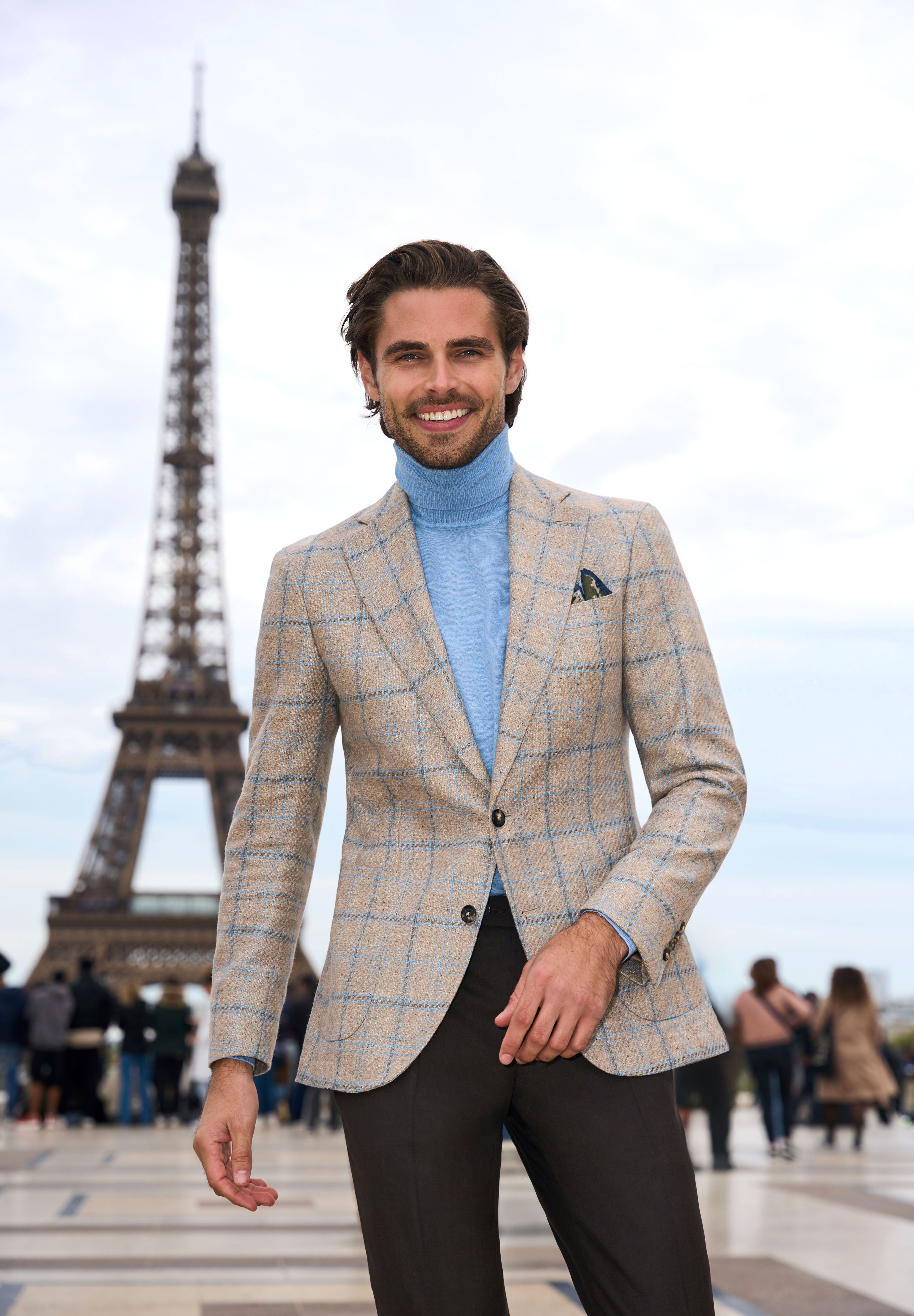 Un sacou jovial, care emană eleganță, mister și mult farmec, asemenea energiei pariziene. Culorile bej și bleu, precum și modelul în carouri, aduc o notă casual și distinsă în același timp ținutei tale, lăsând să transpară într-un mod subtil încrederea, rafinamentul și caracterul jucăuș.
