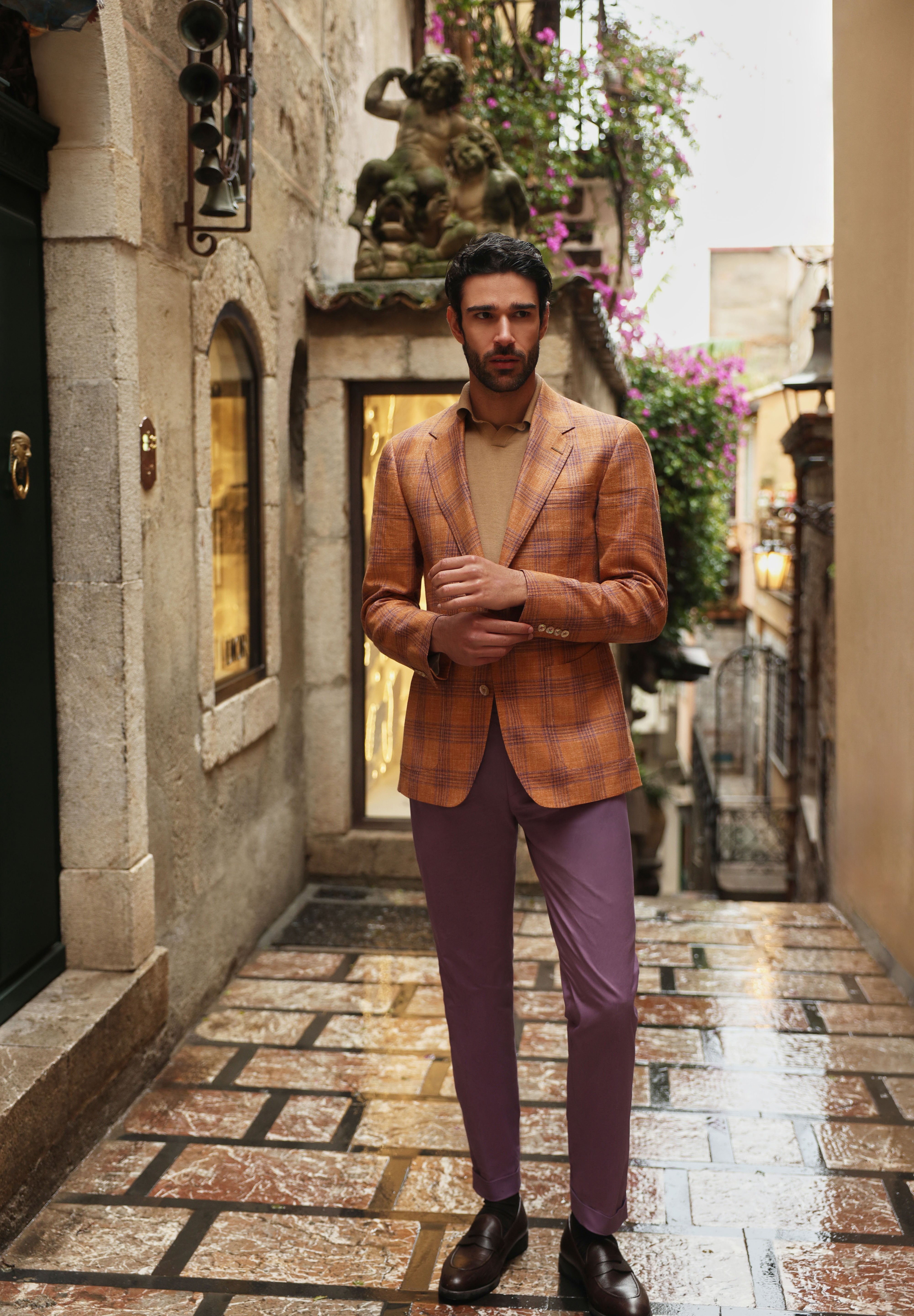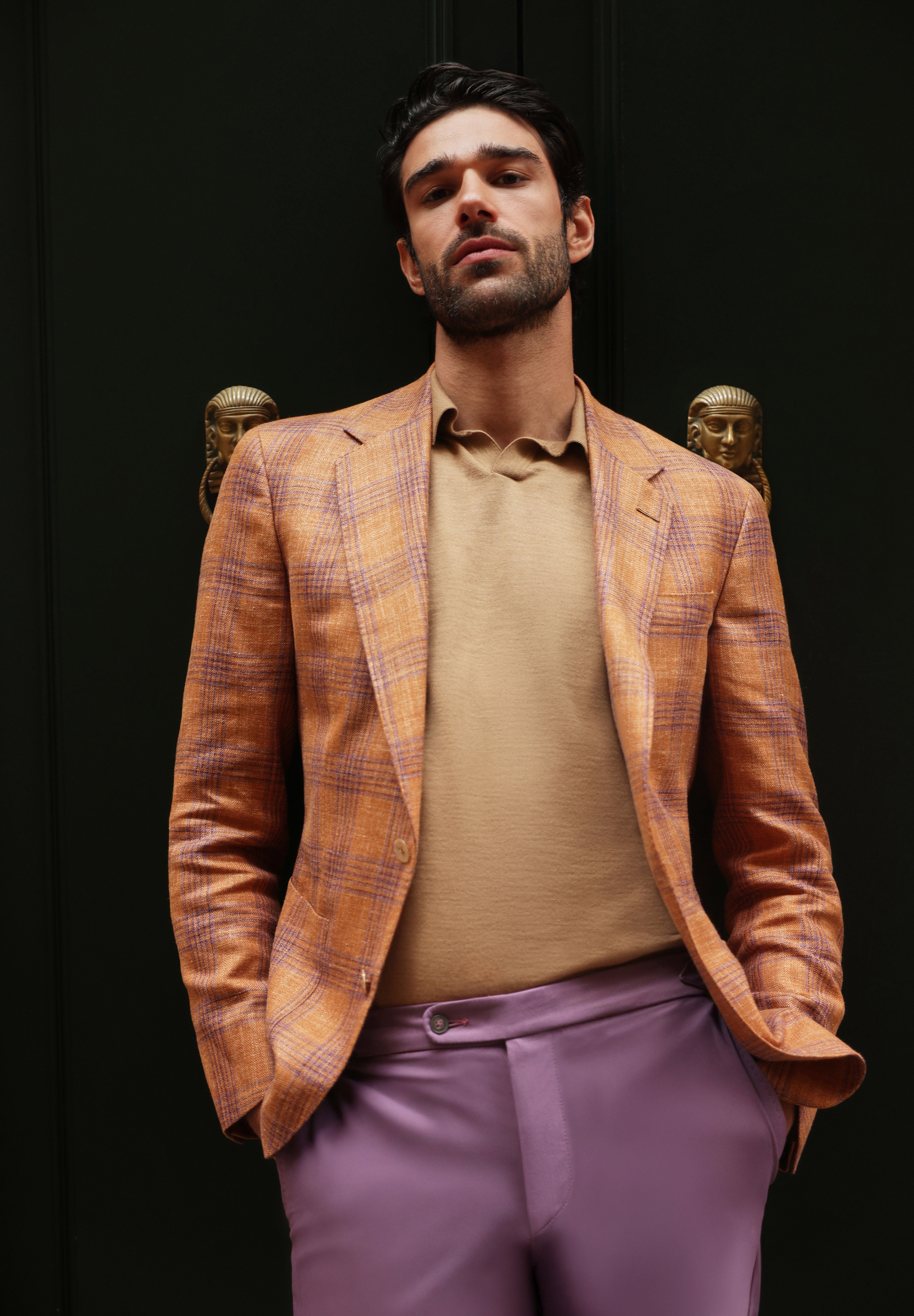 Nuanța caldă, cu accente discrete de maro și oranj, face din acest sacou alegerea perfectă pentru întâlniri business sofisticate sau seri smart-casual într-un cadru elegant.