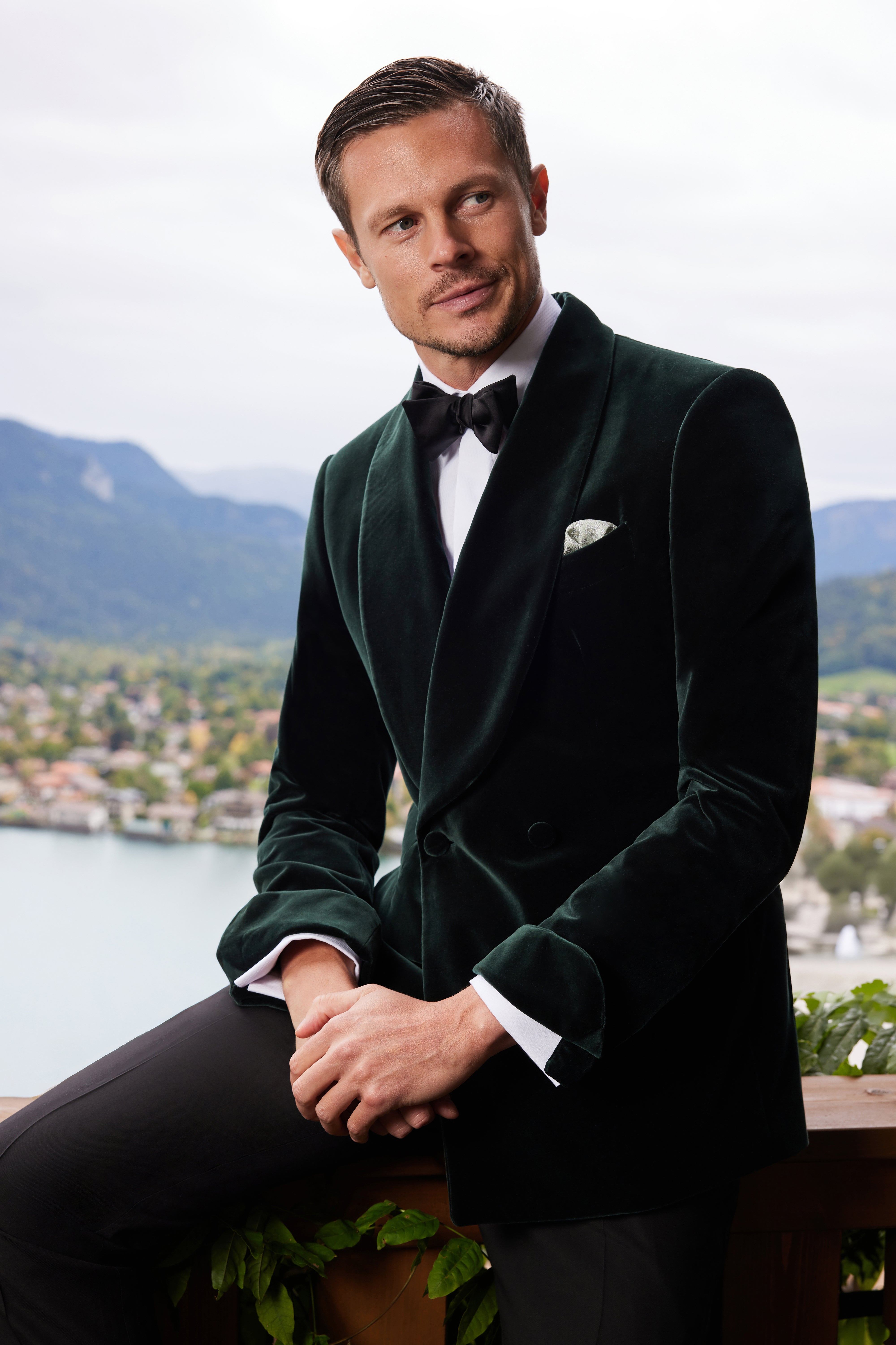 Un sacou care transformă rafinamentul în artă — confecționat dintr-o catifea Dormeuil de un verde adânc, sacoul Midnight Moss aduce un aer de noblețe discretă, iar croiala precisă îi conferă eleganță naturală.