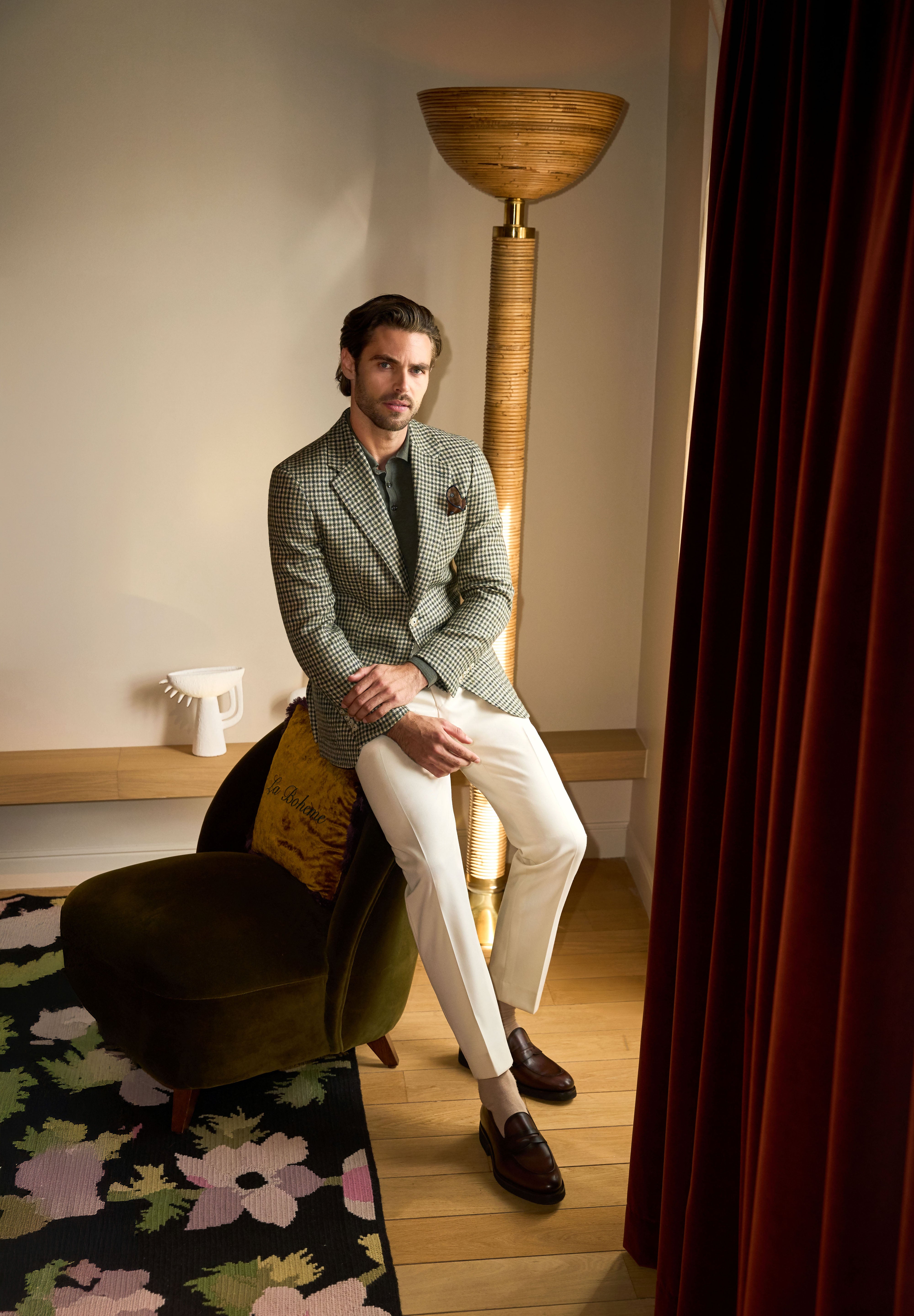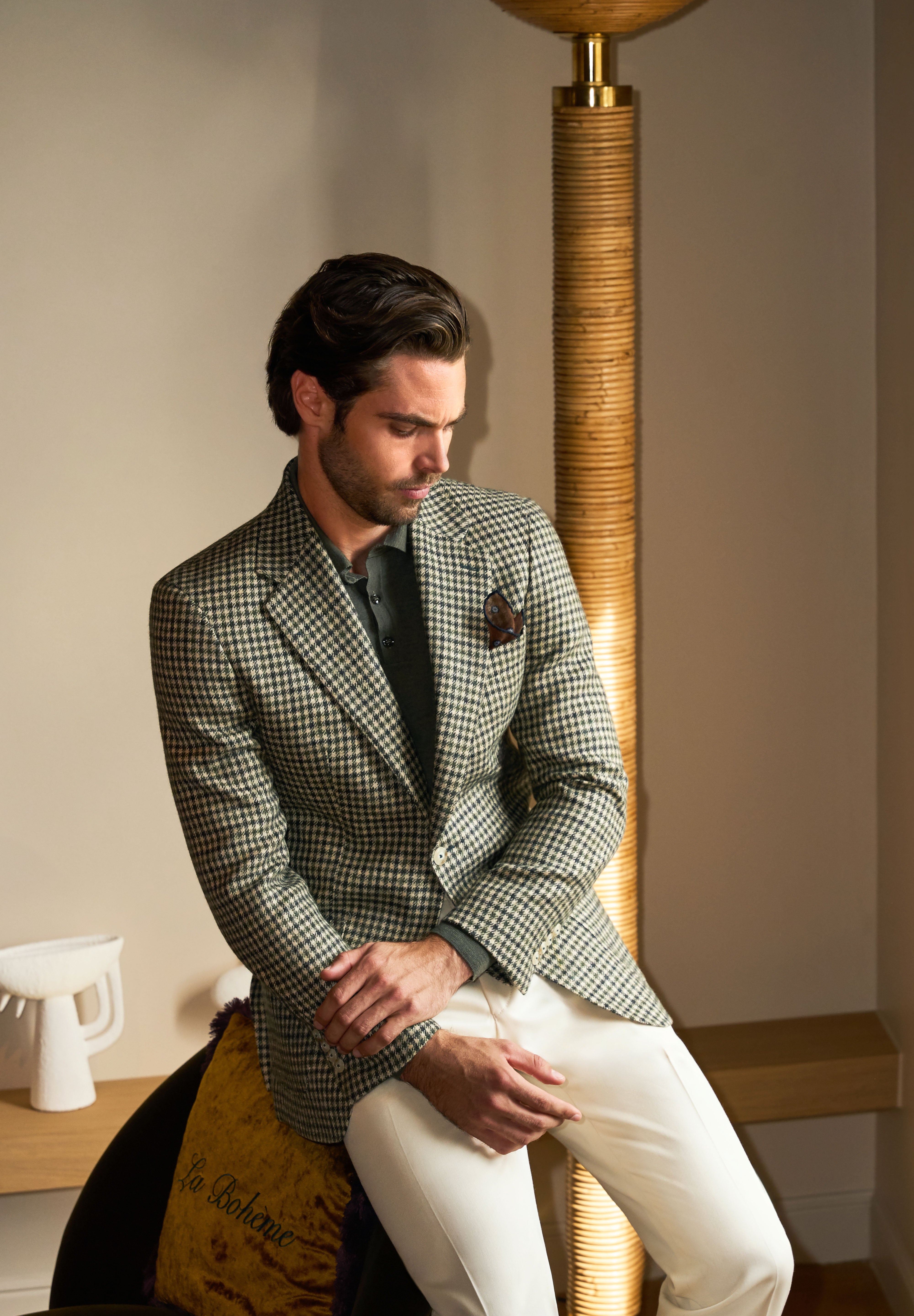 Eleganță clasică cu un twist modern. Modelul îndrăzneț în carouri adaugă oricărei ținute casual, textură și adâncime. Țesut din lână de cea mai fină calitate, 100% baby alpaca, sub egida prestigioasei țesătorii franțuzești Dormeuil, sacoul conferă, pe lângă eleganță și rafinament, respirabilitate și confort de-a lungul zilei.