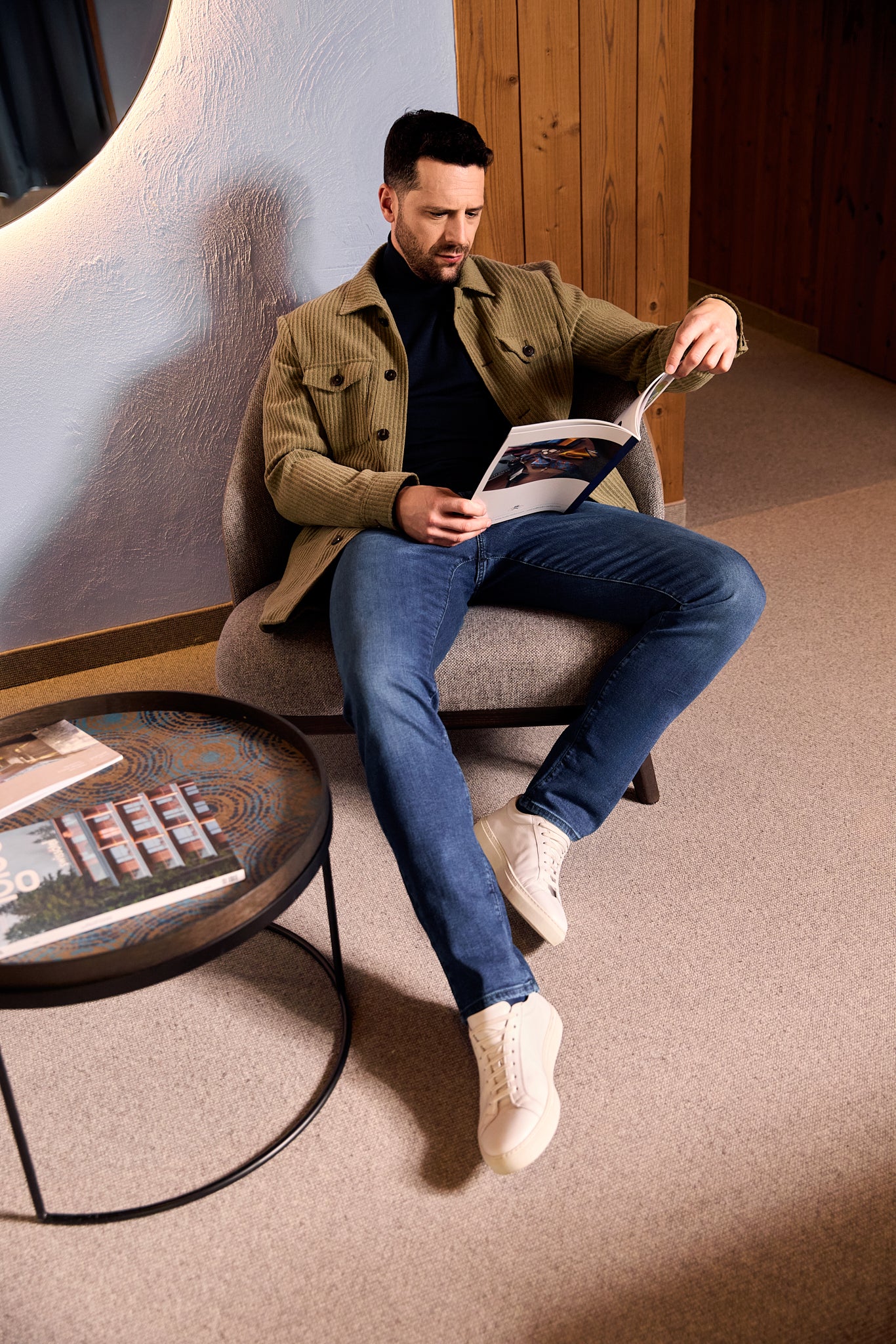 Inspirată de stilul utilitar clasic și reinterpretată într-o cheie contemporană, jacheta Ridge emană rafinament natural și confort stilat. Construită dintr-un amestec premium de la Stylbiella – 66% lână, 24% poliester și 10% vâscoză – această piesă made-to-measure oferă textură, durabilitate și o cădere impecabilă.